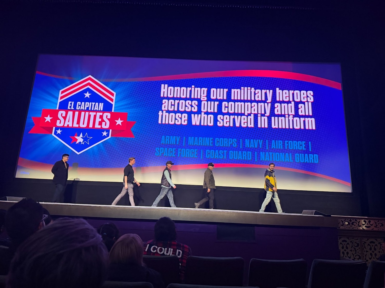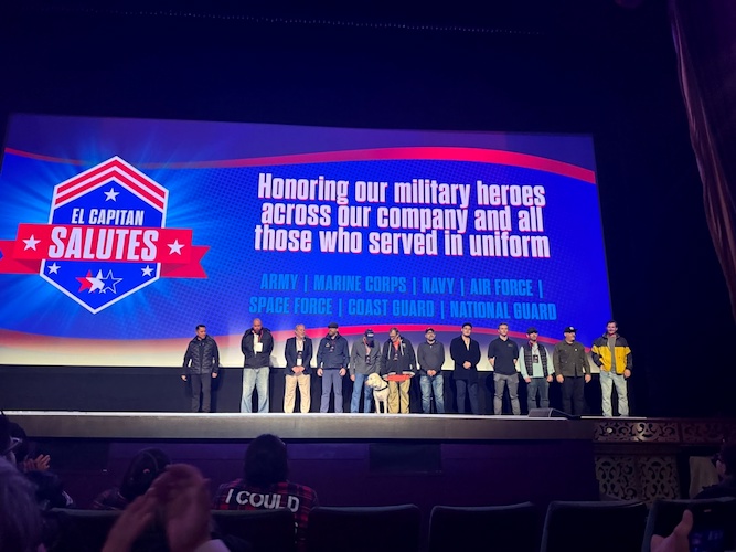 To celebrate opening night of the new film, El Capitan honored real-life heroes from the U.S. Armed Forces, inviting them on stage to be saluted.