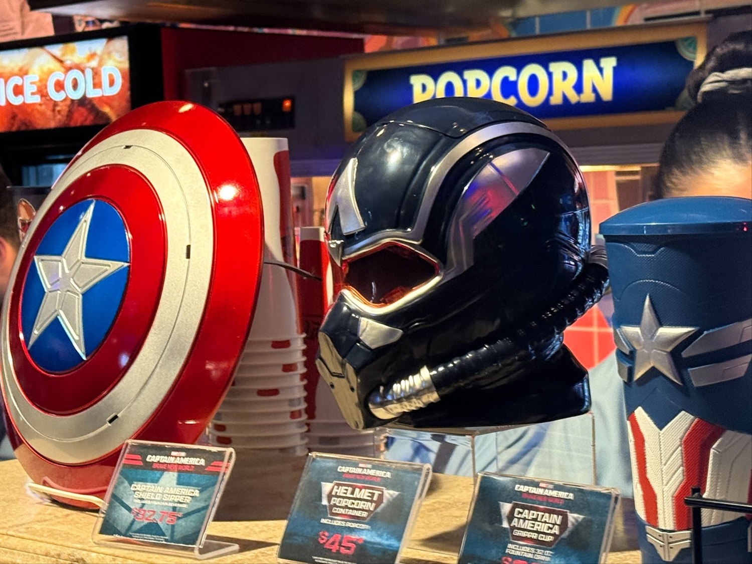 Collectible food and drink vessels are also featured, including a Red Hulk popcorn container ($45), a helmet popcorn container ($45), or a collectible tin for $17.50. Additionally, the shield sipper — which is headed to the Disneyland Resort — and a Cap-inspired gripper cup can be purchased. Lastly, there’s a Red Hulk drink cup for $22.