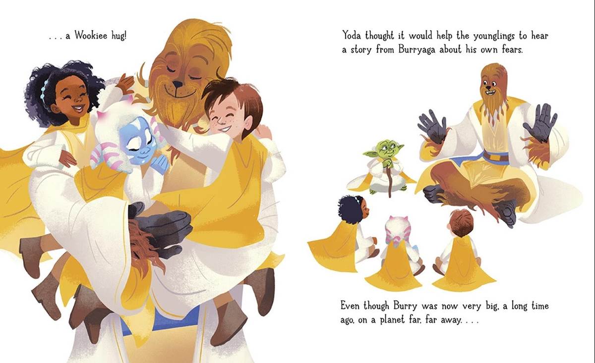 The story sees Grand Master Yoda surprised to find a trio of Jedi Younglings– not the ones from the Star Wars: Young Jedi Adventures animated TV series, though that is indeed set during the same era– afraid to face their future as Padawans and eventual Jedi Knights. Yoda’s solution to this problem is to bring in the Wookiee Burryaga, who relates to them in regards to being afraid. We get flashbacks to Burry’s time growing up on the forest planet of Kasyyyk, and his fear of climbing trees, which he soon learns to overcome thanks to the help of his family. Then it’s time for Yoda, Burryaga, and the three Younglings to take a trip around the galaxy to explore the ways in which fear affects the Jedi and how best to confront it. This narrative fits in with The High Republic’s overall theme of fear in a way that younger kids will understand and be able to process without actually scaring them too much– there are no Nameless creatures stalking the Jedi in these pages.