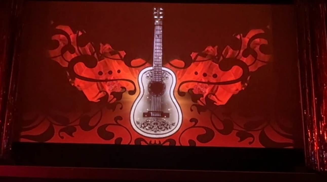 - The approximately 2-minute performance featured bright and colorful projections dancing around a guitar to the Michael Giacchino scored “Fiesta Espectacular."