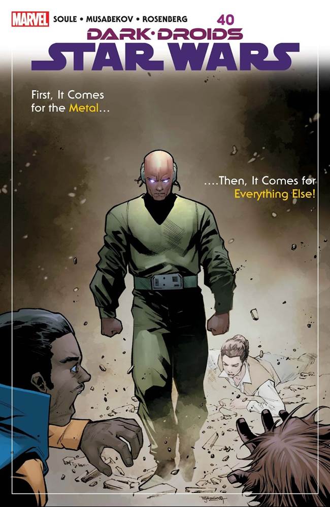 This month’s cliffhanger features our four unlucky protagonists overrun by “Dark Droids" (in keeping with this current crossover event’s title) on the streets of Epikonia, and with a frighteningly malfunctioning Lobot preparing to confront them face-to-face. I thought this was a really exciting issue and another great tie-in to the larger story, but I’m mostly thankful that Charles Soule gets to focus so heavily on Lando Calrissian as a character in this narrative, since he’s just so good at writing him. As always, I can almost hear Billy Dee Williams’ iconic intonations coming from those dialogue balloons, and Musabekov’s art (helped along quite a bit by colorist Rachelle Rosenberg) also goes a long way in establishing the proper tone for this storyline. But I’m simultaneously glad that the heroes have regrouped and are preparing to tackle the Scourge together as this crossover begins to come to a head. I can’t wait to see how they get out of this scrape and how this villain is ultimately dealt with across the coming month or so of comics.