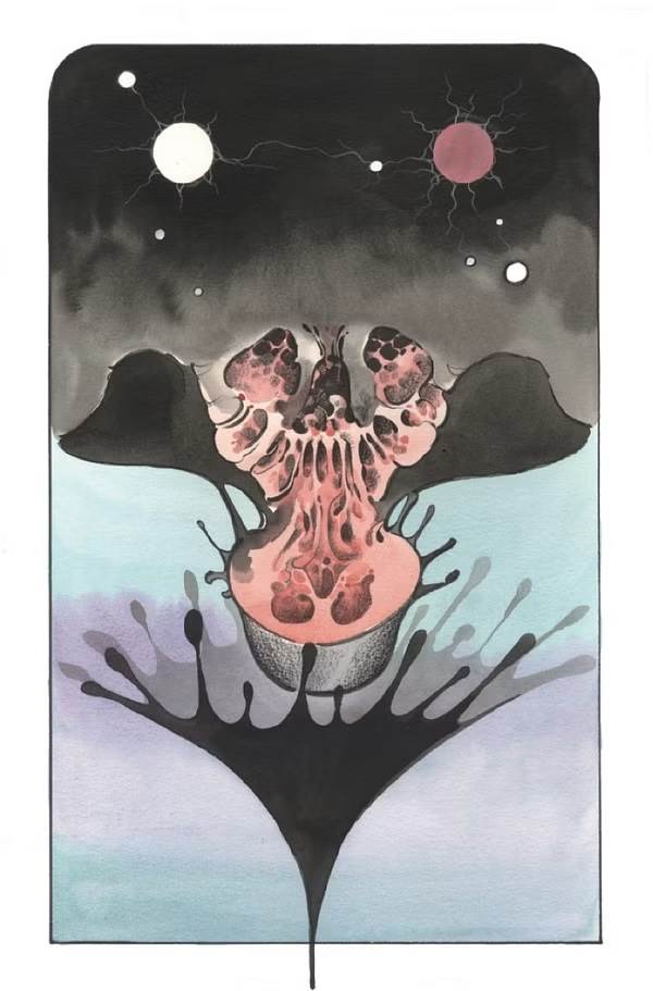 But there is also a character named Kako, who the title page describes as a “descendant of a Sith commander," though the rest of the comic’s contents are entirely wordless. Kako has a hatred toward Ankok, and expresses this by disappearing into the background while the ruler’s submissive followers allow themselves to be violated by grotesque pink tentacles emanating from Ankok’s throne. Instead, Kako and her android Gel (not referred to as a droid, interestingly) retreat to a nearby marketplace, where they encounter a young shopkeep named Popo, who takes interest in their cause. Soon Kako, Gel, and Pop find themselves allied with each other, and infiltrate the next meeting of Ankok’s followers. During this ceremony, Kako allows herself to be defiled by the tentacles, only to use her opposing powers to eliminate Ankok once and for all.