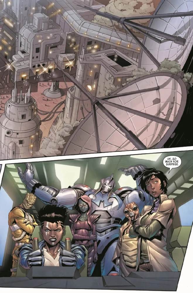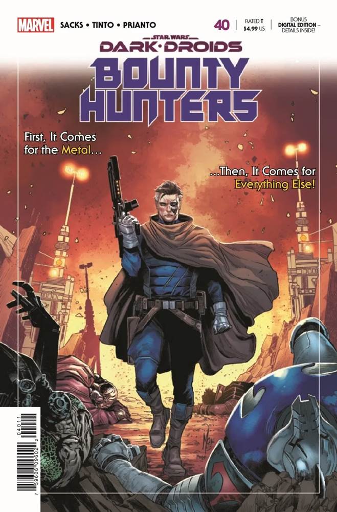 The final page of this issue reveals T’onga waking up in captivity, immediately confronted by the corrupted Beilert Valance, who claims that “Valance as you knew him is gone." And the Scourge, through Beilert, threatens to take over T’onga’s body as well, now that the artificial intelligence has moved on from possessing solely droids, cyborgs, and sentient hybroids into the possibility of inhabiting fully organic beings. It’s a great, tantalizing cliffhanger leading into the final month of the Dark Droids crossover event, and writer Ethan Sacks has nailed the suspenseful tone. Plus a huge amount of credit for the success of this issue goes to artist Davide Tinto and colorist Arif Prianto for delivering a kinetic, engaging visual style that carries the reader through the story.
