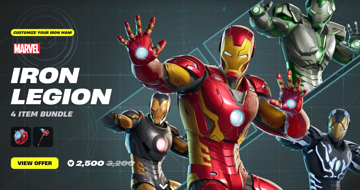 - The new Iron Man bundle will run you 2,500 V-Bucks (Around $22.50).