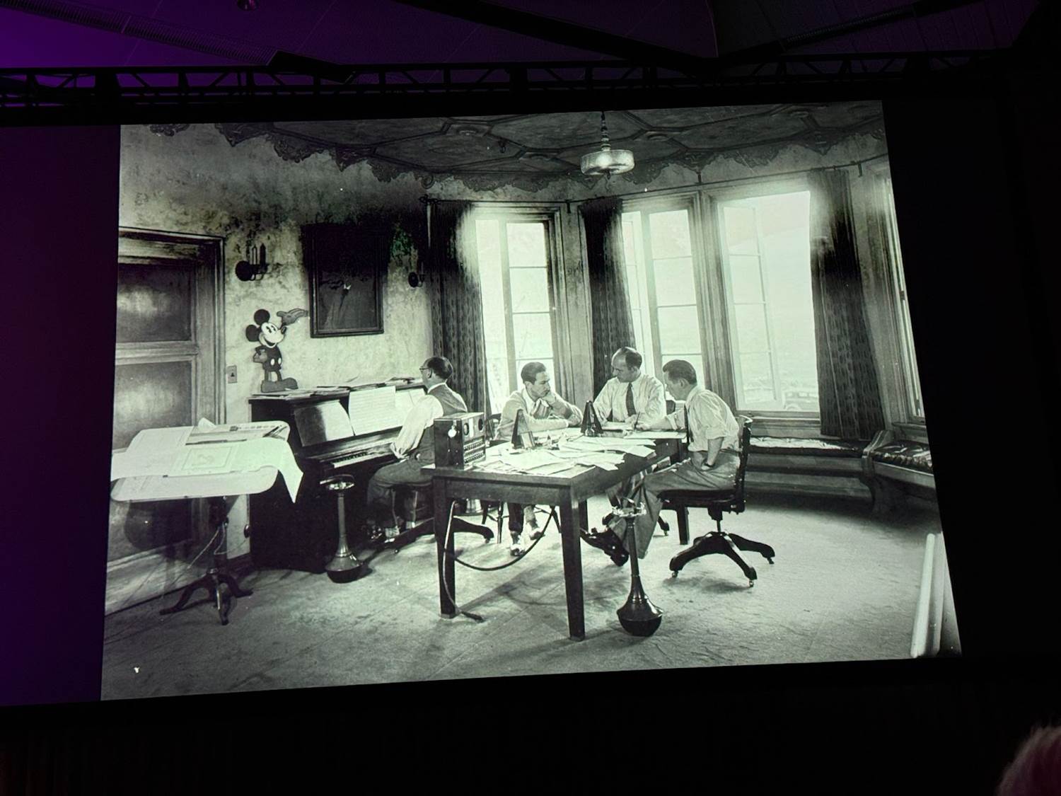 Don Peri and Pete Docter began their discussion by talking about the misconception that Walt Disney directed many of the studio’s early animated shorts and features, and they commented that most big Disney fans have not memorized the actual names of these directors, even though many of them know Walt’s “Nine Old Men" of animation. Docter and Peri also talked about their histories with the Disney company and their lifelong interests in animation, and Don plugged the previous history books he has written about The Walt Disney Company.