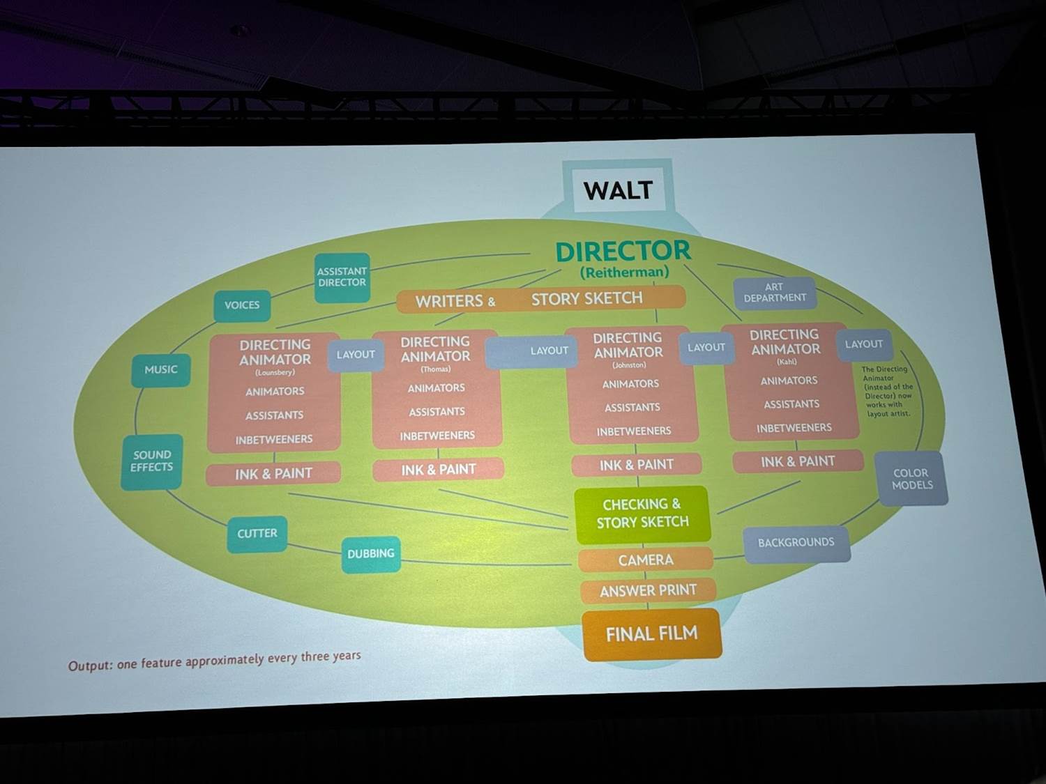 The first interview conducted for the new book was with John Musker (director of The Little Mermaid, Aladdin, and Hercules), and research was conducted at the Walt Disney Animation Research Library. During the presentation Peri and Docter announced that an exhibit based on the book Directing at Disney will be opening at the Walt Disney Family Museum in San Francisco this fall. They also shared how the sections of the book break down.