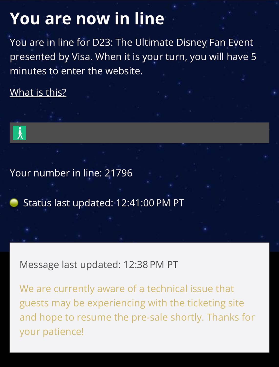 Gold Member tickets to D23: The Ultimate Disney Fan Event were scheduled to go on sale at noon PT today, however, as has sadly become the norm with Disney ticket sales, there have been technical issues and delays.
