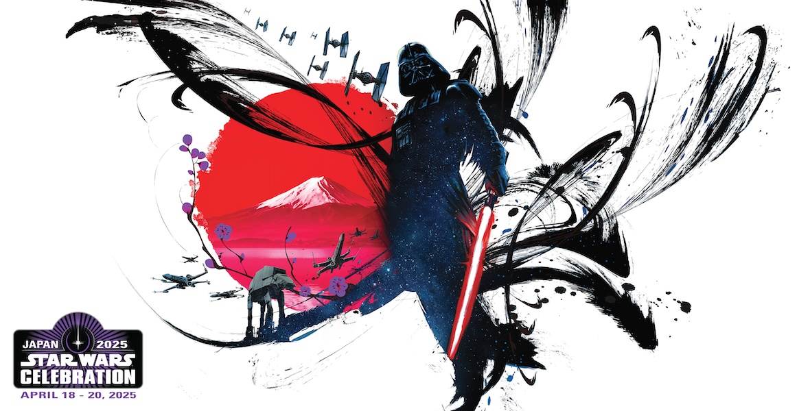 - Inspired by the traditional Japanese ink painting style known as sumi-e, the 2025 Key Art features the looming presence of Darth Vader accompanied by beautiful cherry blossoms and sweeping ink strokes. X-wings, TIE fighters, and Imperial AT-AT walkers feature prominently in the foreground, while the Rising Sun—Mount Fuji contained within—completes the stunning piece.