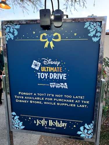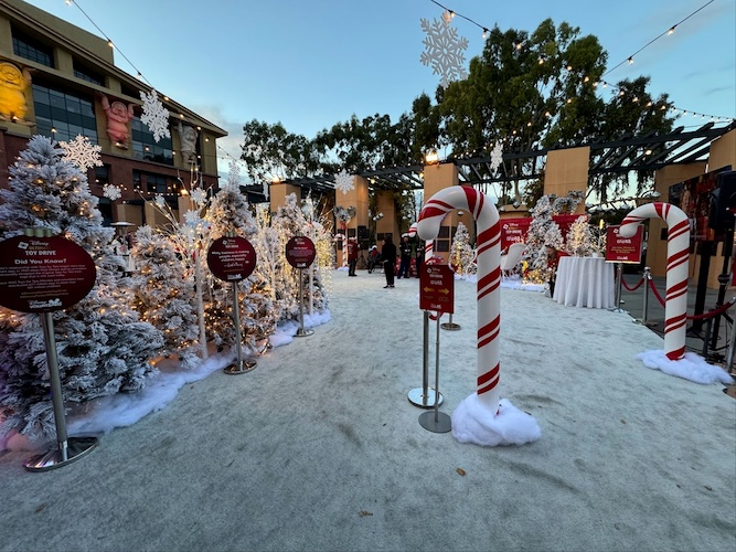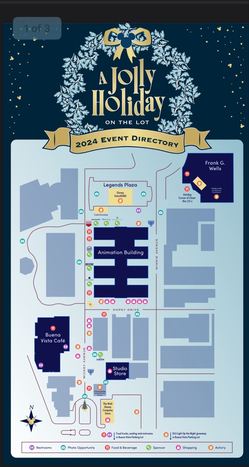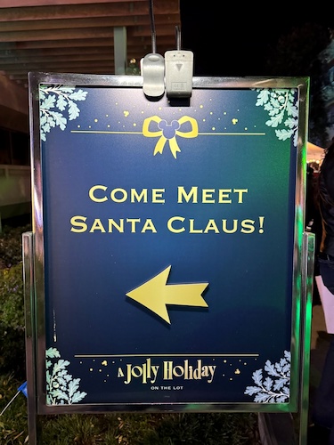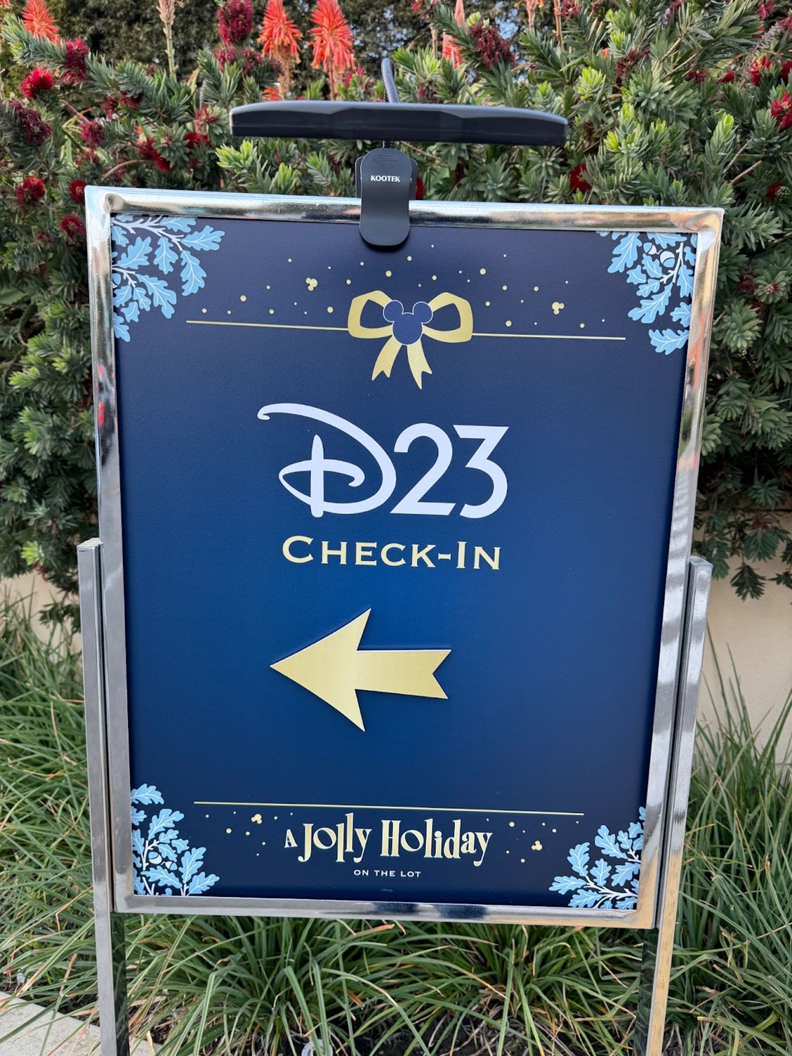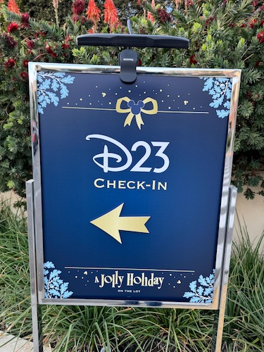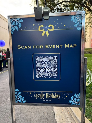 Walking from there over to the area of the lot where the event was being held, I saw that Disney and D23 had gone to great lengths to decorate the studio for this year’s holiday season. I also was able to scan a QR code on a sign to access the map for A Jolly Holiday On the Lot.