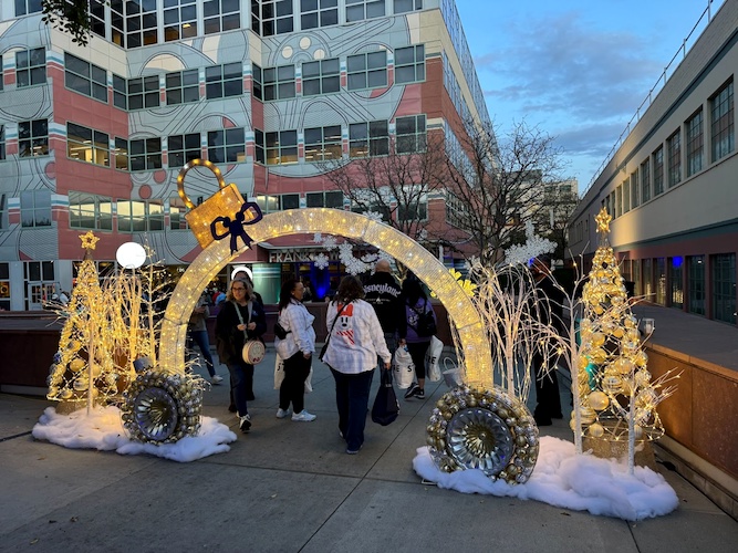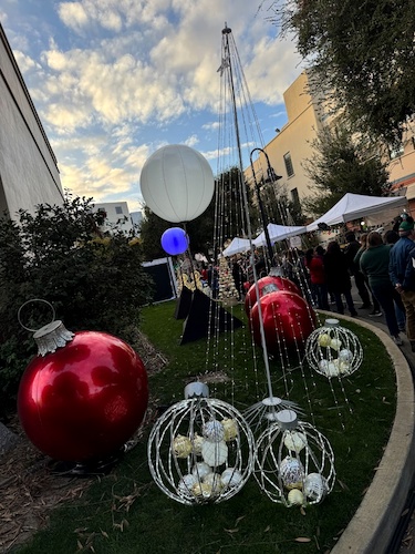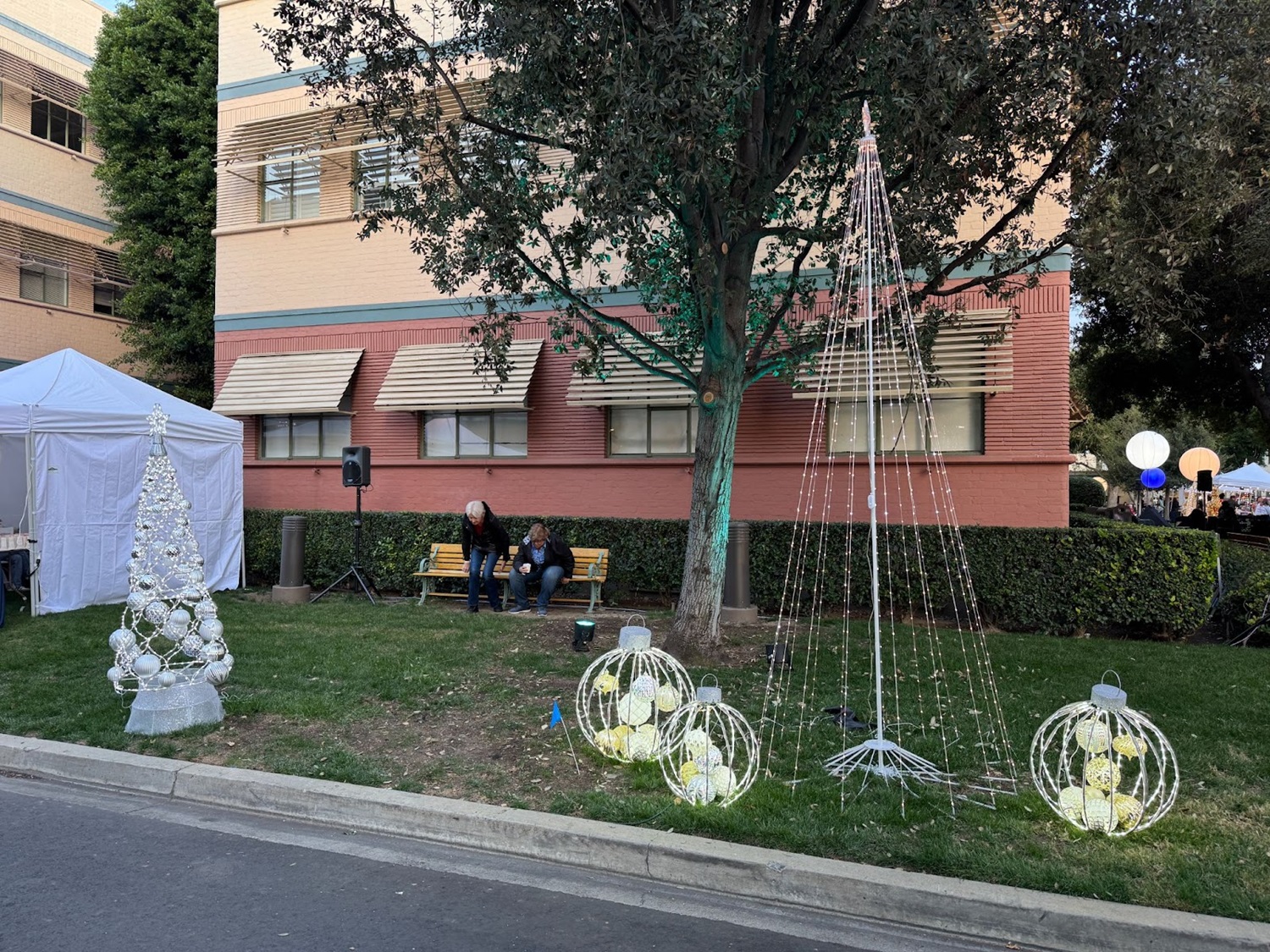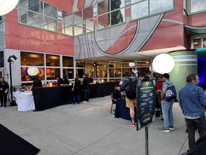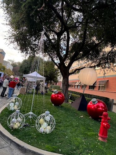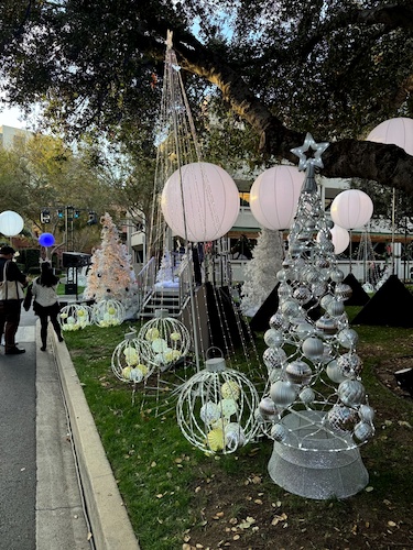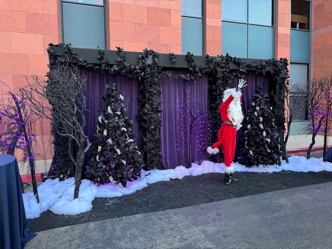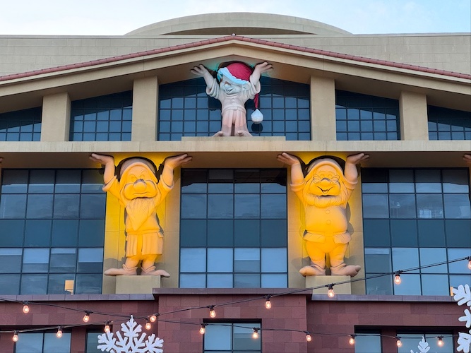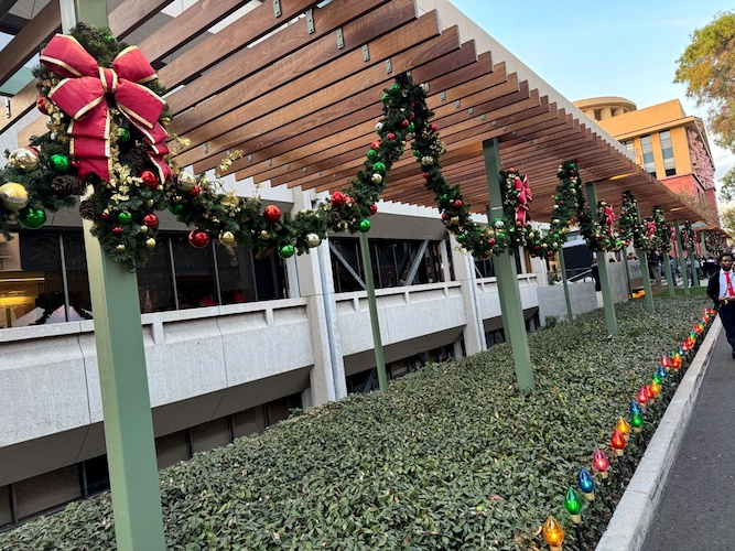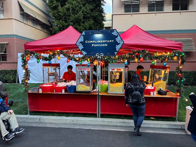 Walking from there over to the area of the lot where the event was being held, I saw that Disney and D23 had gone to great lengths to decorate the studio for this year’s holiday season. I also was able to scan a QR code on a sign to access the map for A Jolly Holiday On the Lot.