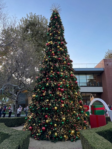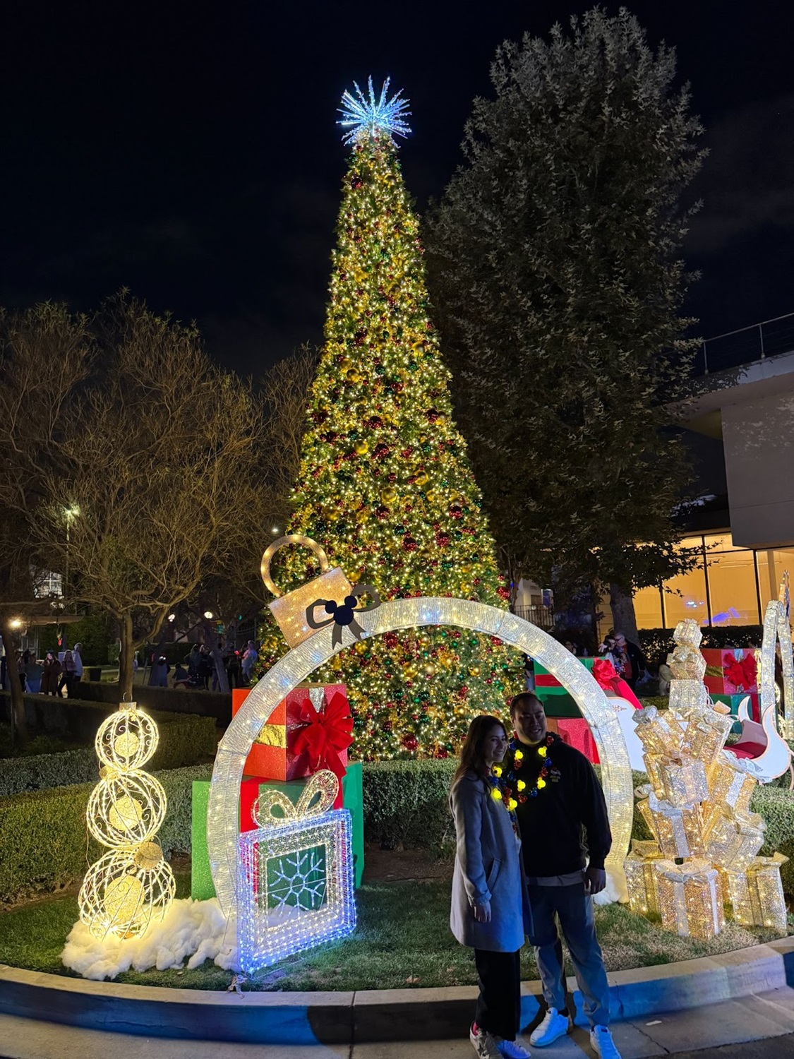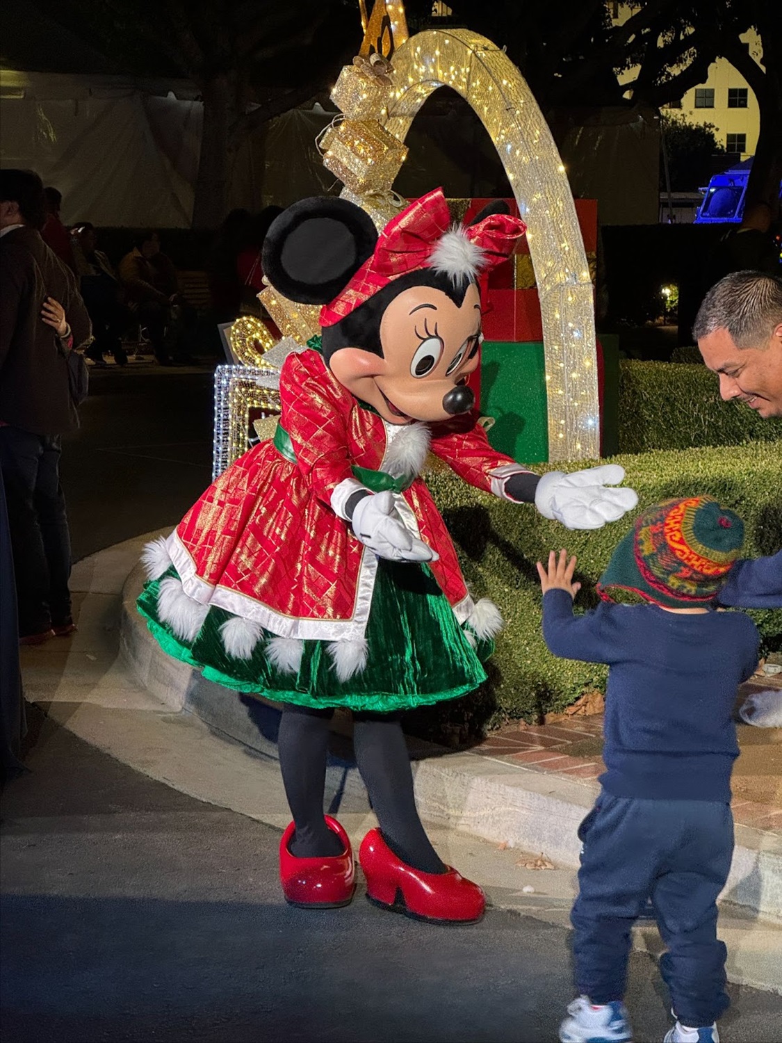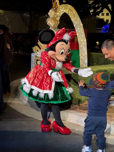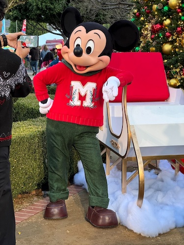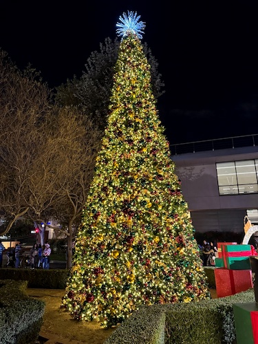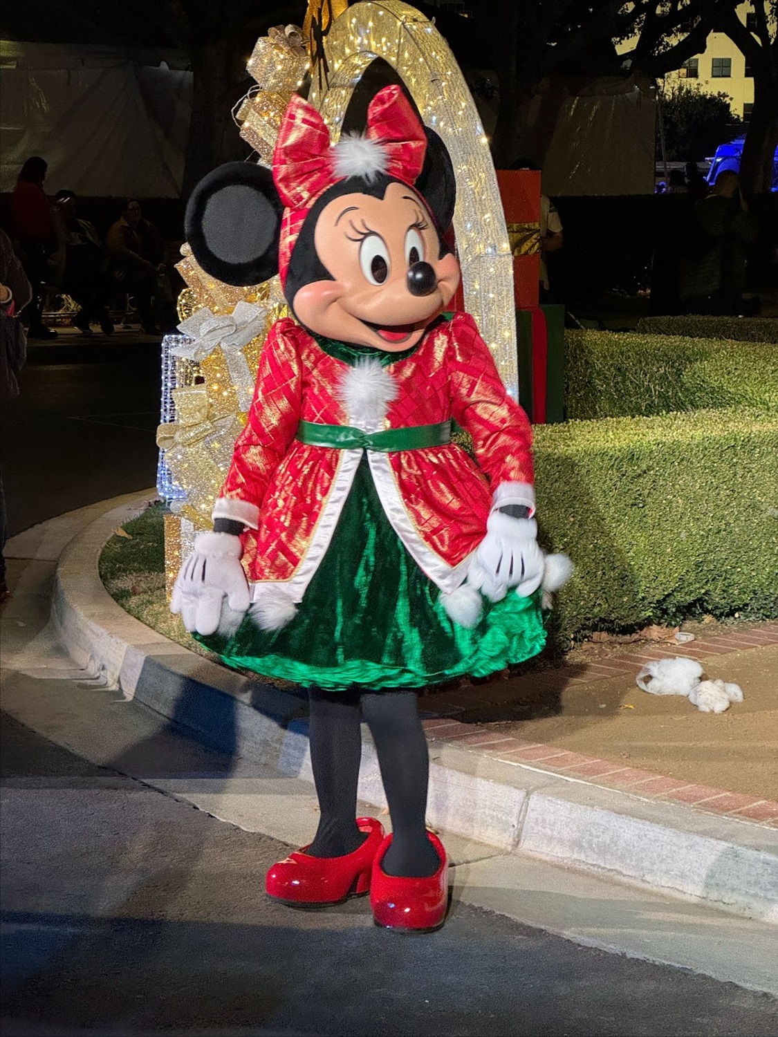 Mickey Mouse was camped out in front of the lot’s Christmas tree, also decorated quite nicely.