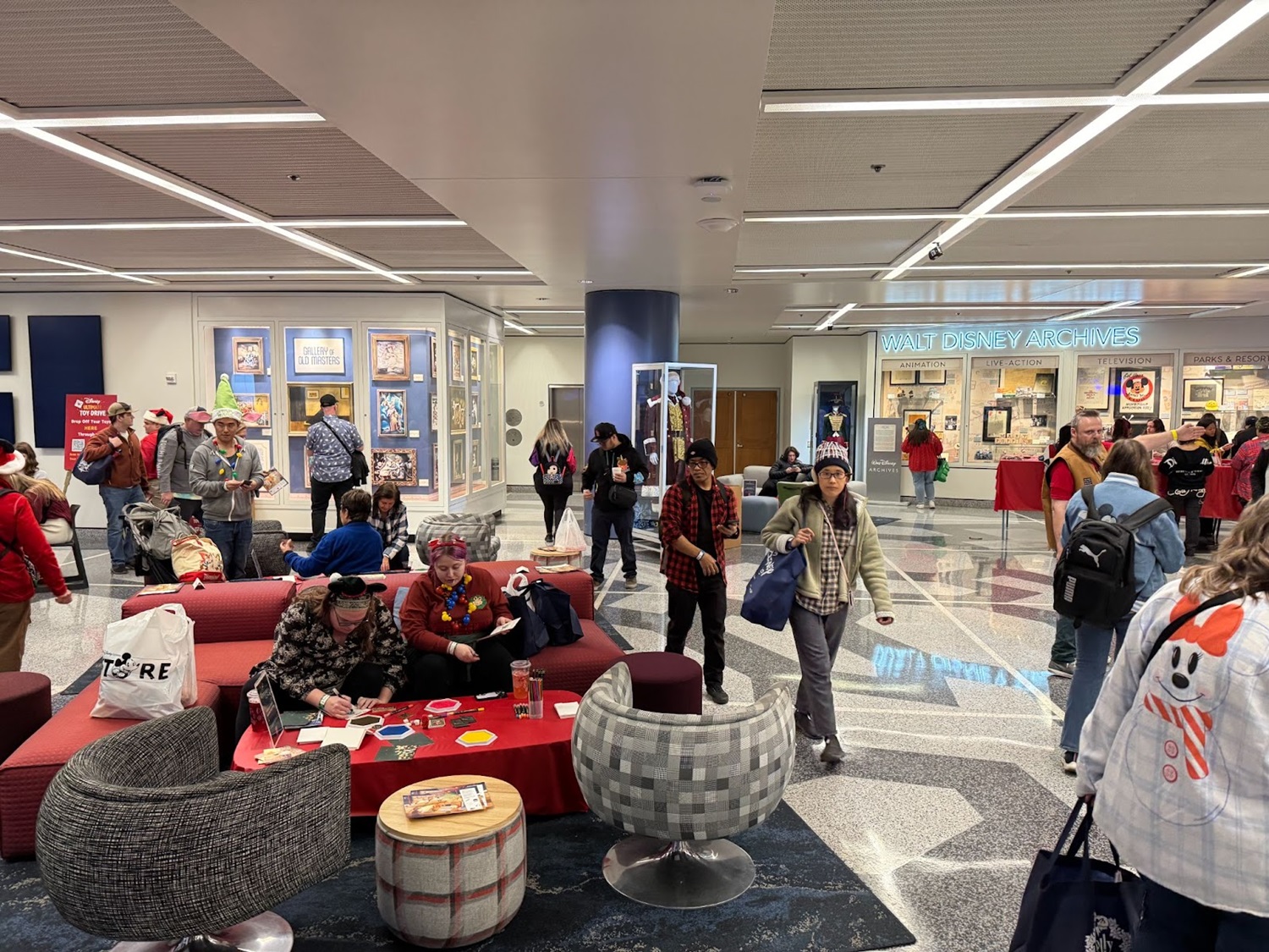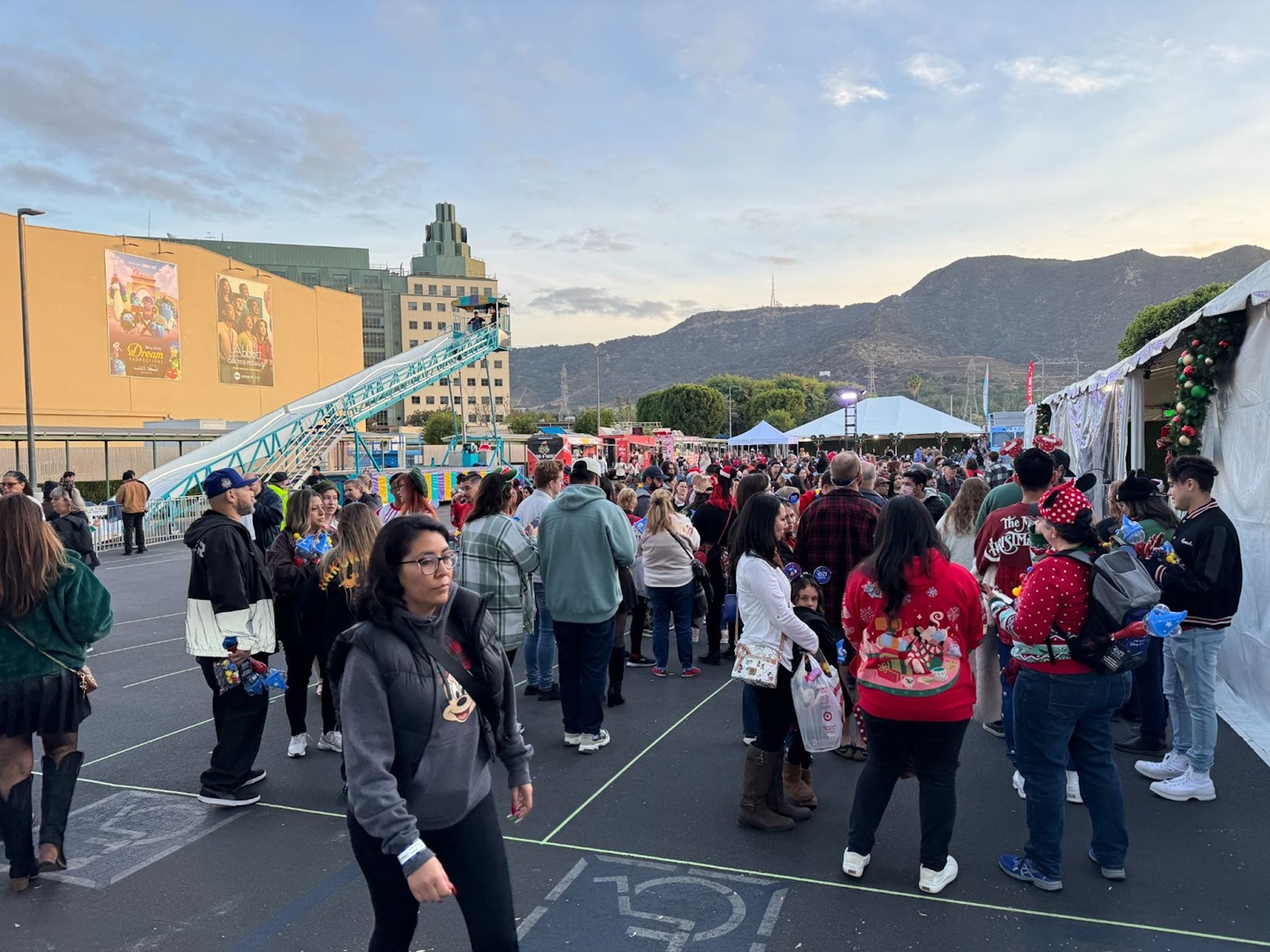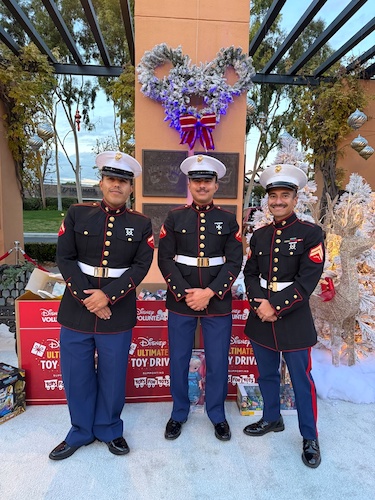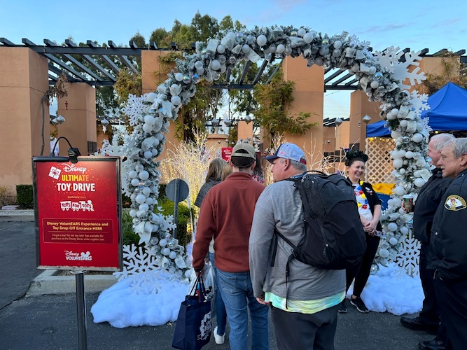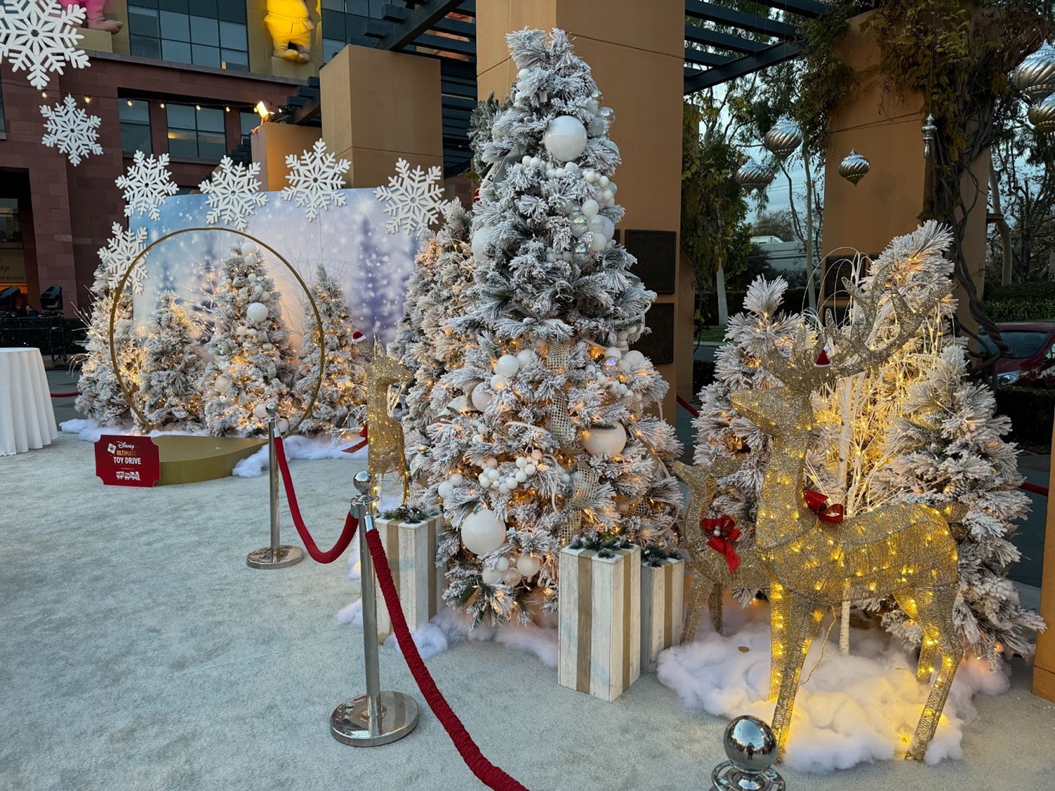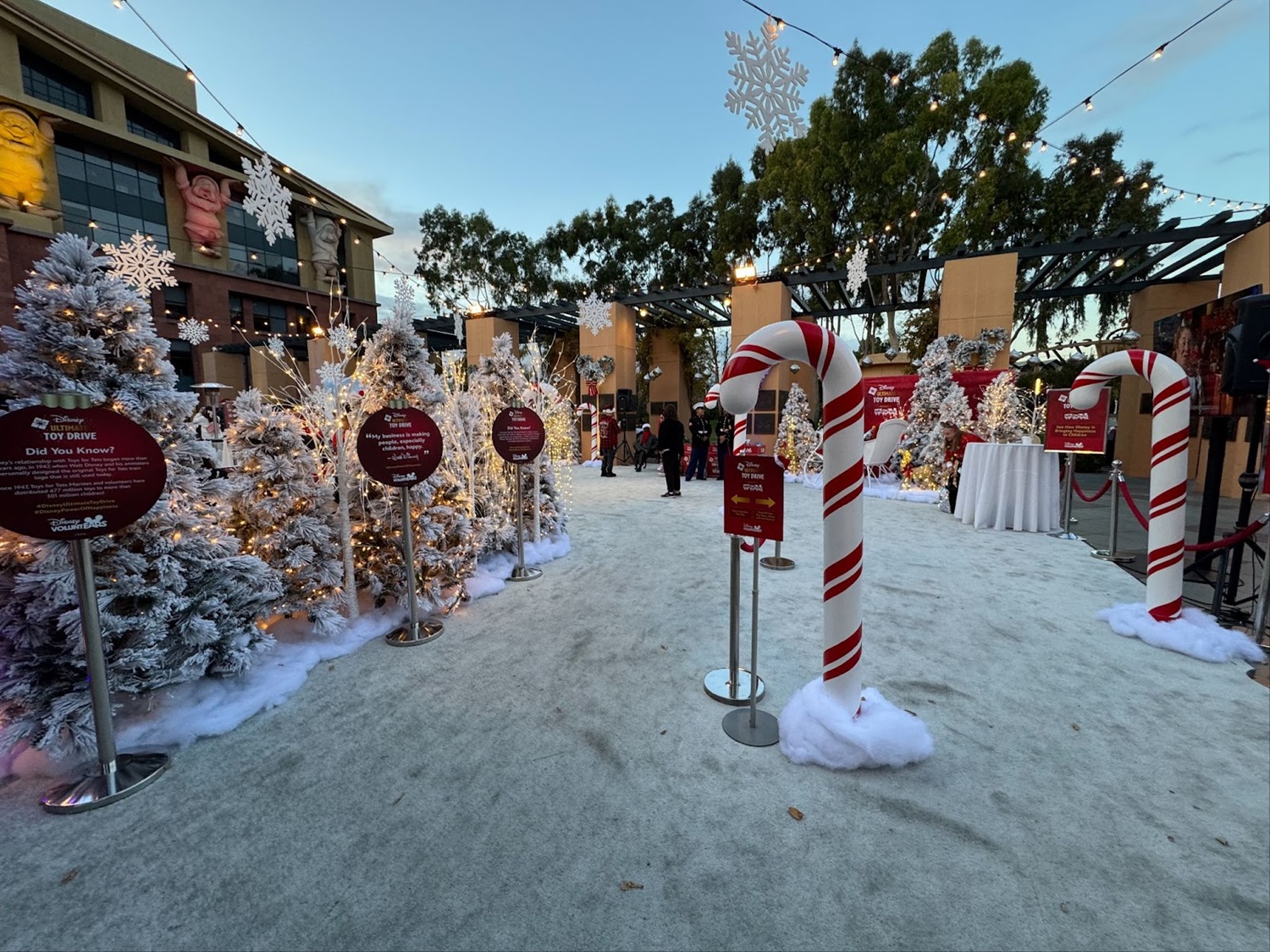 The north section of the lot felt the most wintry to me, with the Team Disney building’s Seven Dwarfs lit up for the season, Toys for Tots represented by the United States Marine Corps, and even Roy O. Disney, Minnie Mouse, Walt Disney, and Mickey Mouse dressed in Santa hats and red scarves via their respective statues in Legends Plaza. Plus there were more shopping booths and games for attendees in this area of the event.