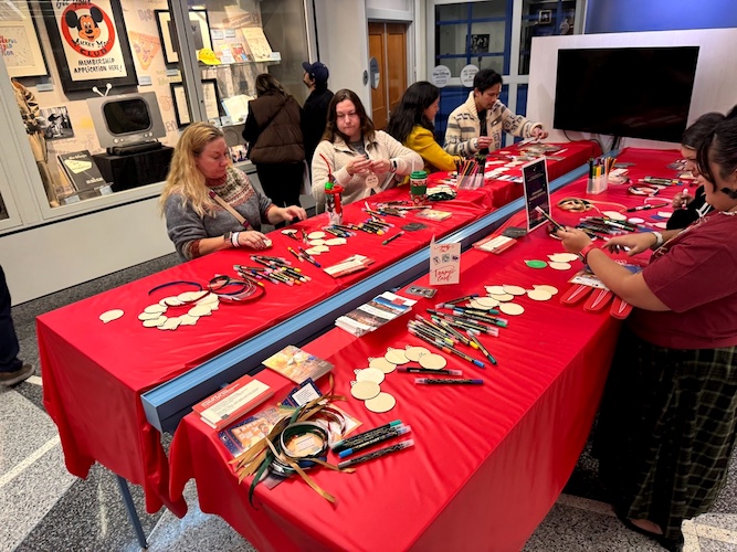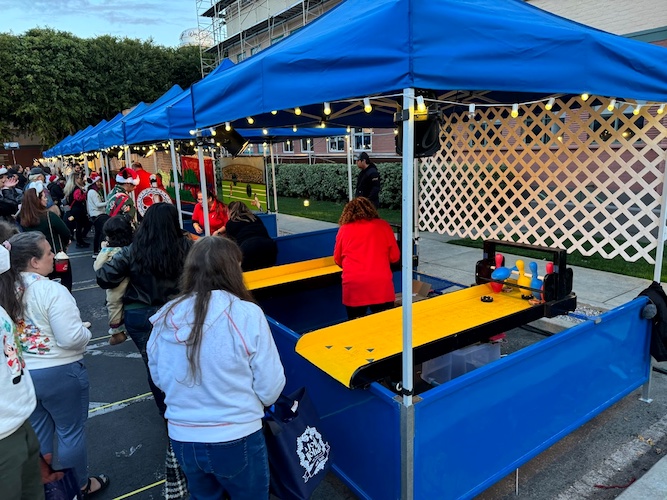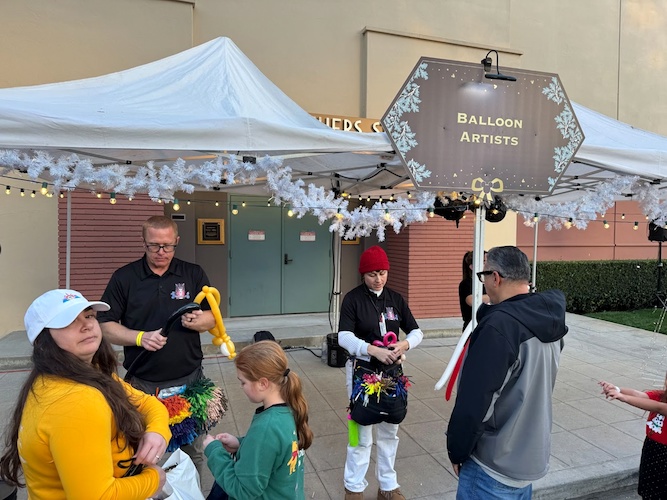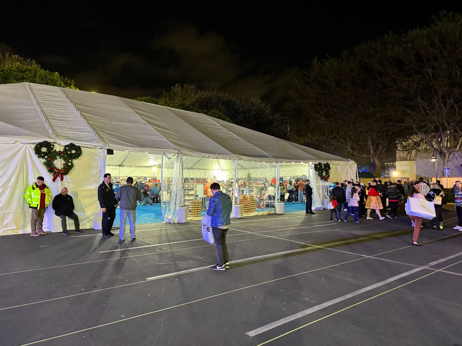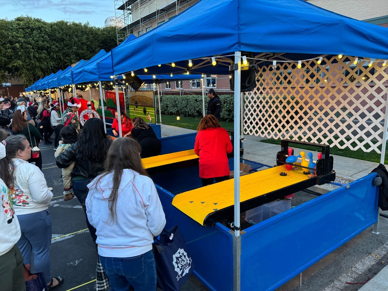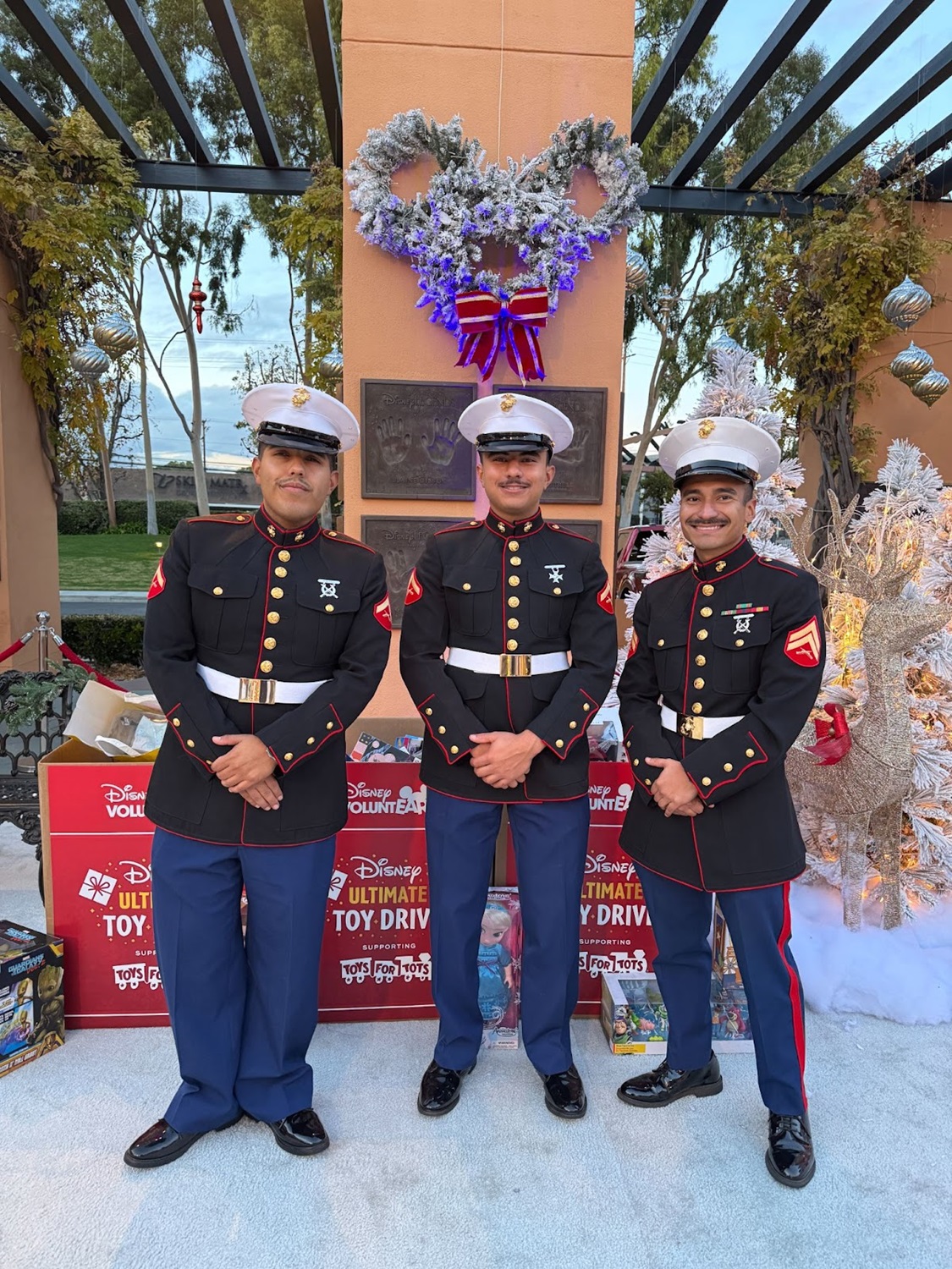 The north section of the lot felt the most wintry to me, with the Team Disney building’s Seven Dwarfs lit up for the season, Toys for Tots represented by the United States Marine Corps, and even Roy O. Disney, Minnie Mouse, Walt Disney, and Mickey Mouse dressed in Santa hats and red scarves via their respective statues in Legends Plaza. Plus there were more shopping booths and games for attendees in this area of the event.