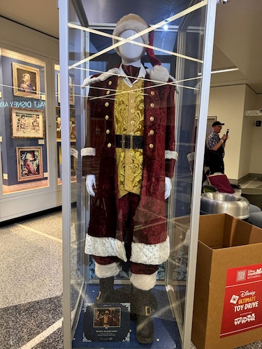 Down by the lobby of the Frank G. Wells building was the adults-only bar called the “Holiday Corner of Cheer," and the interior housed an event-exclusive display of holiday costumes from parks and movies put on by The Walt Disney Archives.