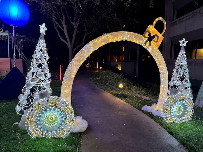 By the time I completed that first lap around the lot, night had fallen on Burbank and A Jolly Holiday was lit up with all of its many colorful lights.