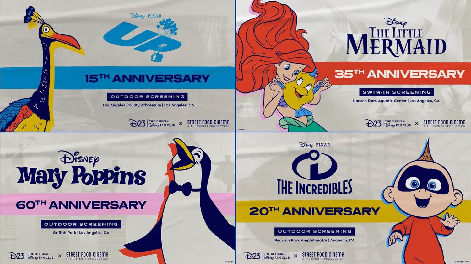 - D23 Members are invited to enjoy the ultimate outdoor screening celebration, celebrating the anniversaries of four animated films from Disney and Pixar.