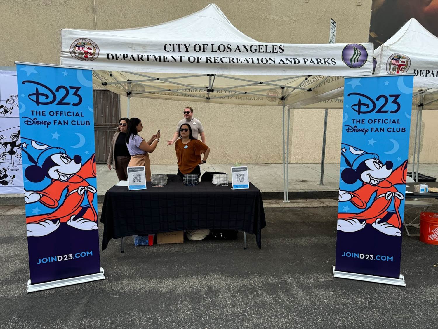 And of course our friends from D23: The Official Disney Fan Club had a tented booth of their own set up at the event. Attendees who showed their D23 Gold Member card could grab a magnet of their choice and a D23 carabiner, and there were two Disney Bros. Cartoon Studio-themed photo ops available as well.