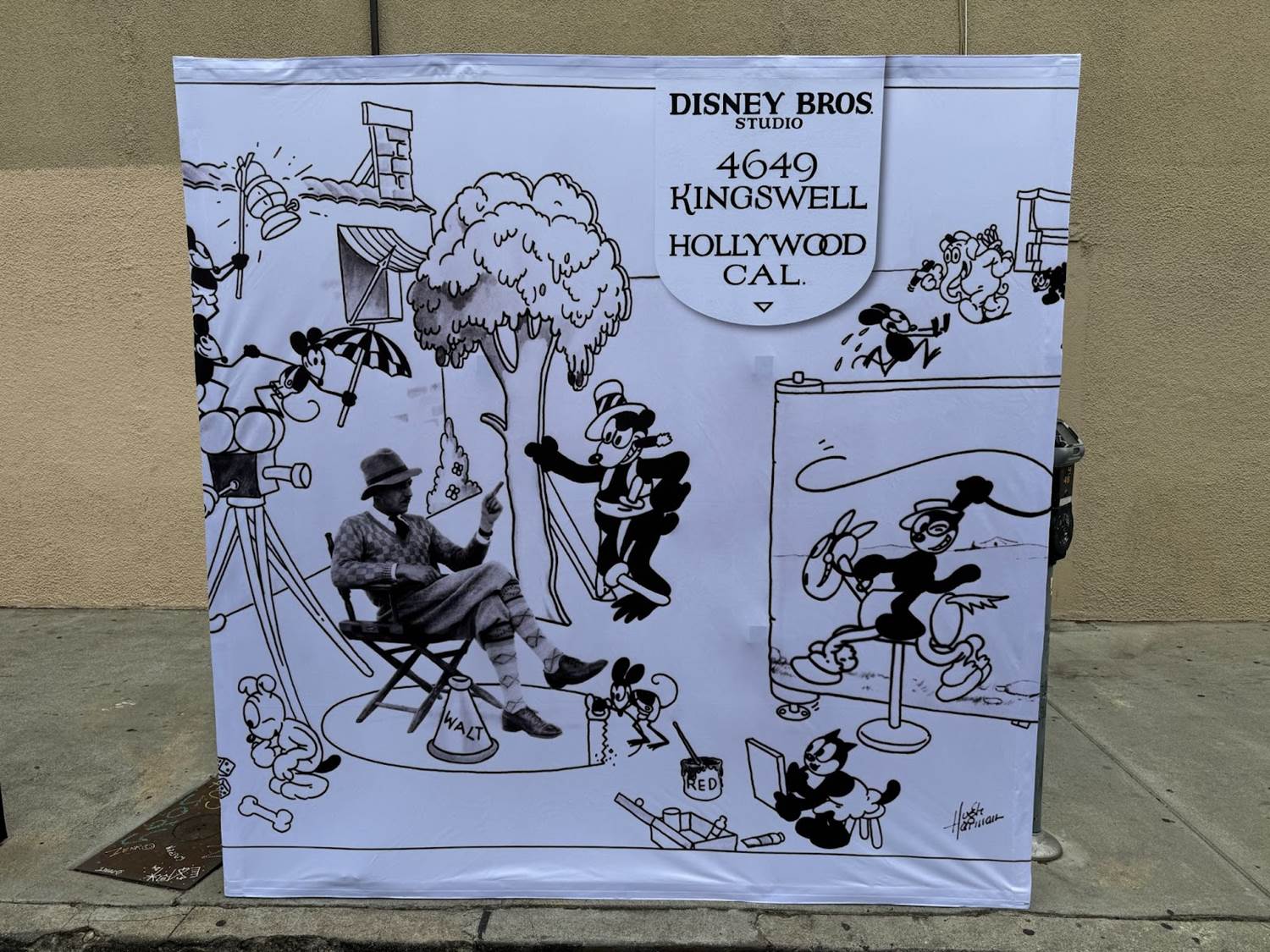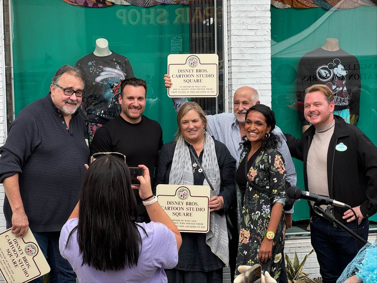 Yesterday afternoon in Southern California, we attended the open-to-the-public dedication of Disney Bros. Cartoon Studio Square at the site of Walt and Roy Disney’s original 1923 studio at the corner of Kingswell and Vermont Avenues in Los Feliz, California.