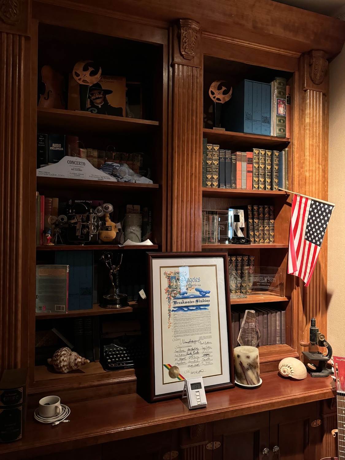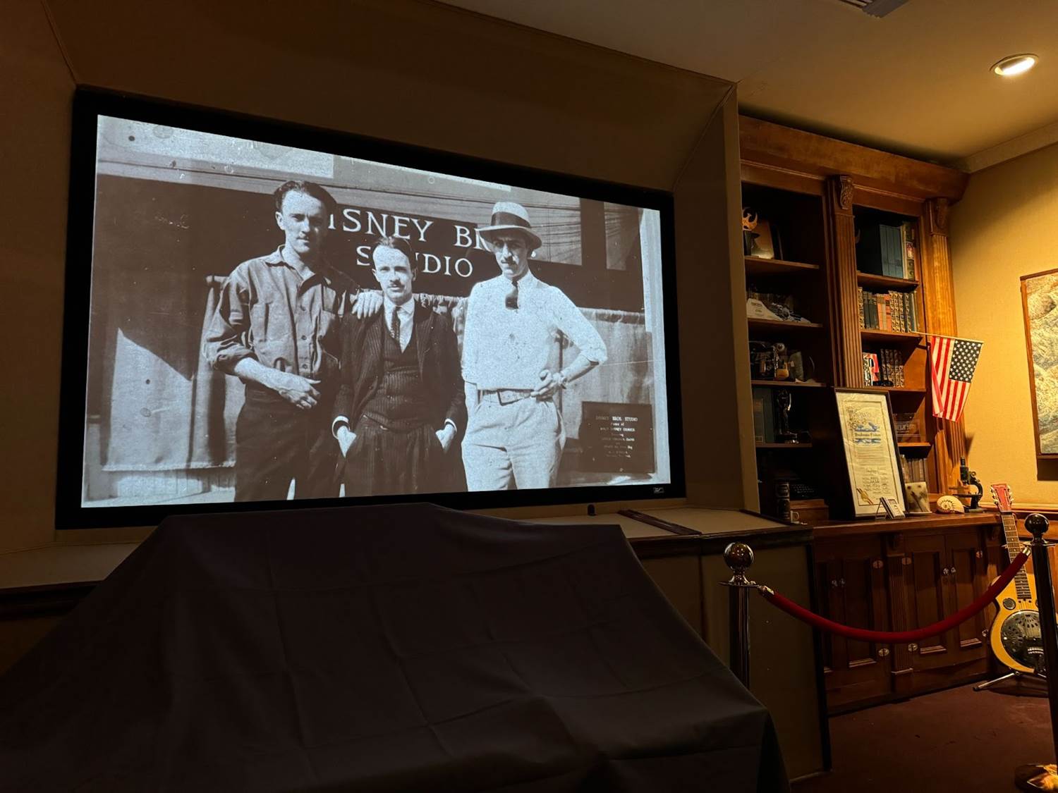 Upstairs in one of the buildings was a screening room set up to play Don Hahn’s 40-minute documentary Westward Walt, which chronicled the story of Walt Disney and his brother Roy as they traveled from Chicago, Illinois to Marceline, Missouri, then to Europe during World War I, and lastly to Hollywood where they made their fortune and changed the world through their cartoon business.