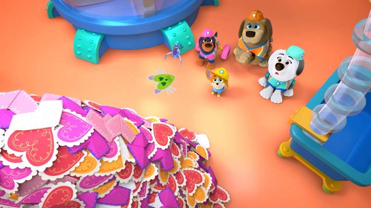 The episode is currently airing on Disney Channel and Disney Junior and is also available on Disney+. In it, Mr. Puppypaws uses his glitter dragon to steal Valentine’s Day cards.