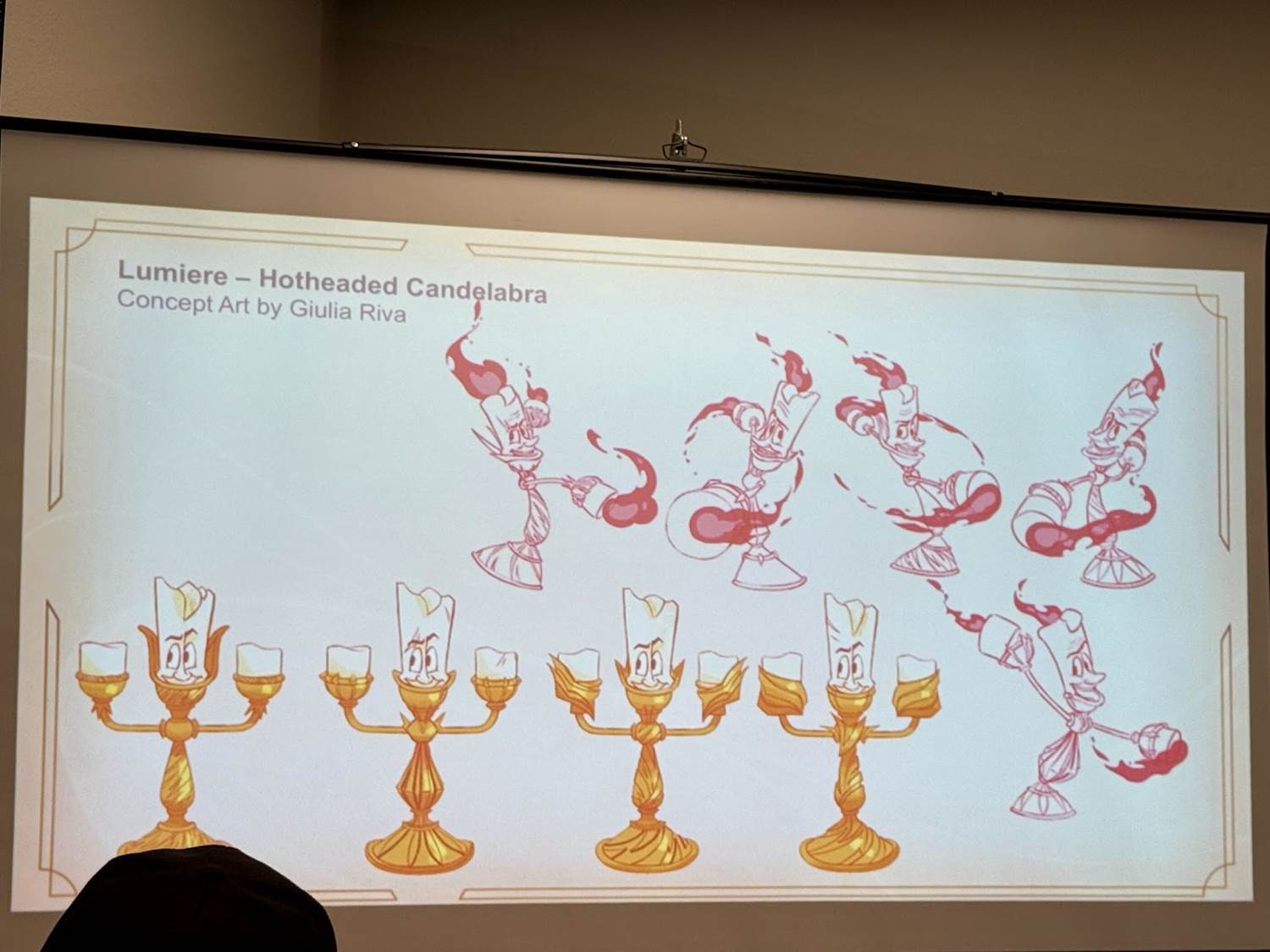 Giulia Riva’s Lumiere - Hotheaded Candleabra (from Rise of the Floodborn) card embraces Ruby’s fiery and daring energy. Lumiere’s usually rounded, elegant design was adapted with sharper elements in his costume and flames, giving him a bold, challenging stance. Riva described experimenting with costumes and poses to maintain his graceful essence while adding a touch of aggression, creating a Lumiere who’s not just charming but battle-ready. A small scar across his eye adds a hint of backstory, suggesting that he’s faced challenges head-on, which perfectly aligns with Ruby’s daring nature.