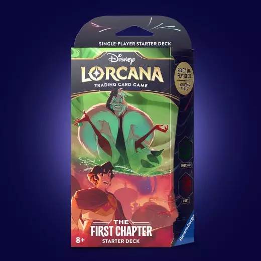 - Starter Decks (Cruella De Vil & Aladdin, Mickey & Moana, and Aurora & Simba)