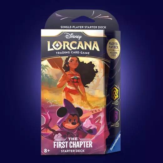 - Starter Decks (Cruella De Vil & Aladdin, Mickey & Moana, and Aurora & Simba)
