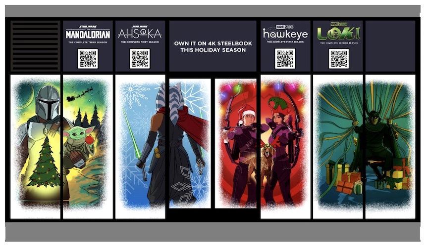 - Holiday inspired artwork celebrating season 3 of The Mandalorian, season 1 of Ahsoka, season 1 of Hawkeye, and season 2 of Loki will pop-up at these three locations.