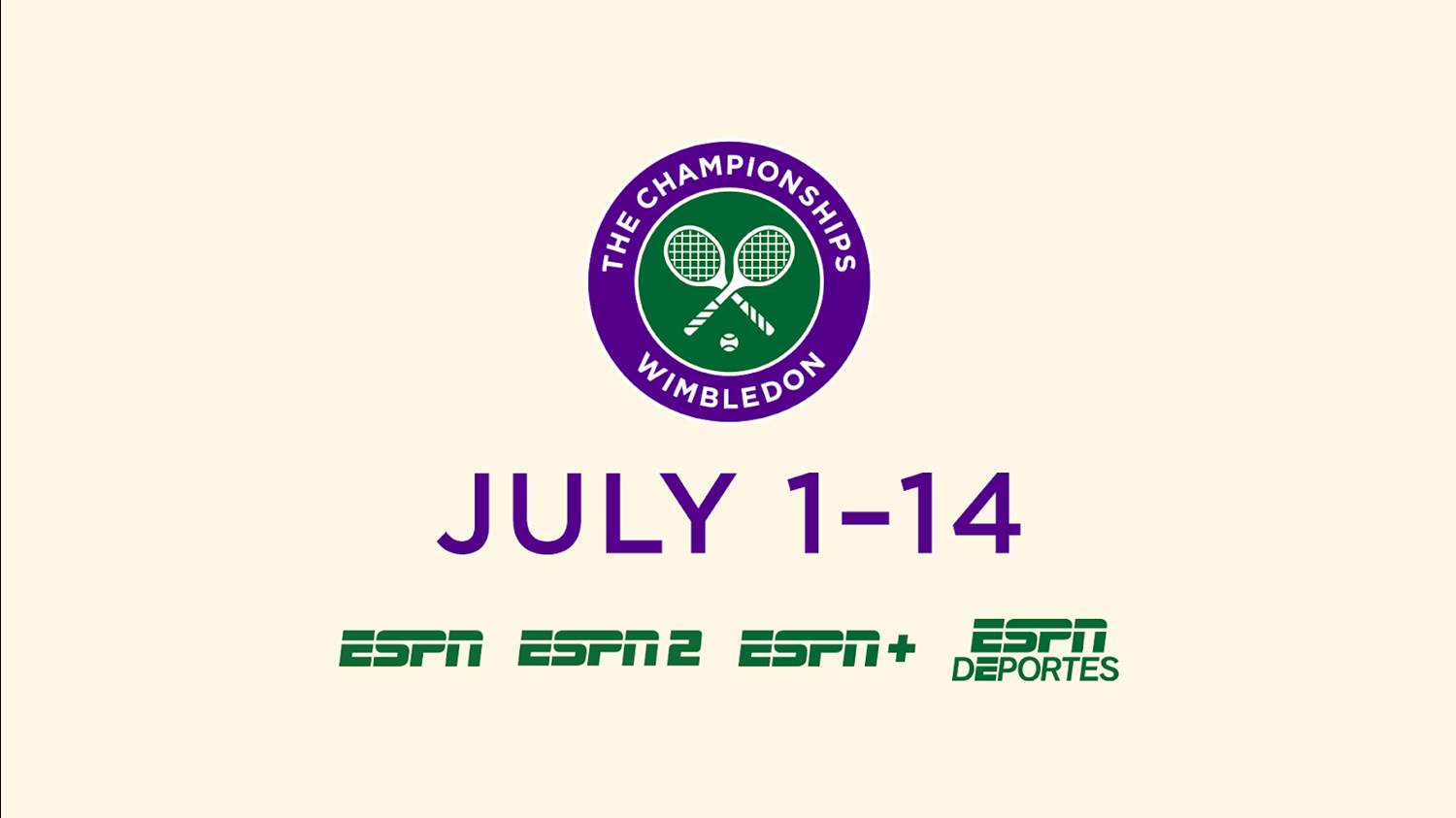 - The network will have a marathon of coverage from all 18 courts, ending on July 14th with the Gentlemen’s Championship and Ladies’ Doubles Championship. The July 13th Ladies’ Championship and July 14th Gentlemen’s Championship will also stream on ESPN+ in English and Spanish.
