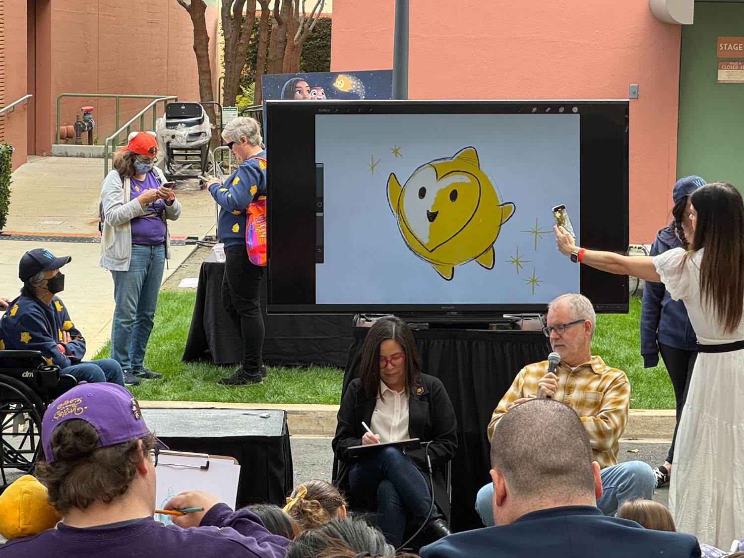 Next, directors Fawn Veerasunthorn and Chris Buck led a “how-to-draw" demonstration, showing fans how to draw Star, Valentino, and Asha.