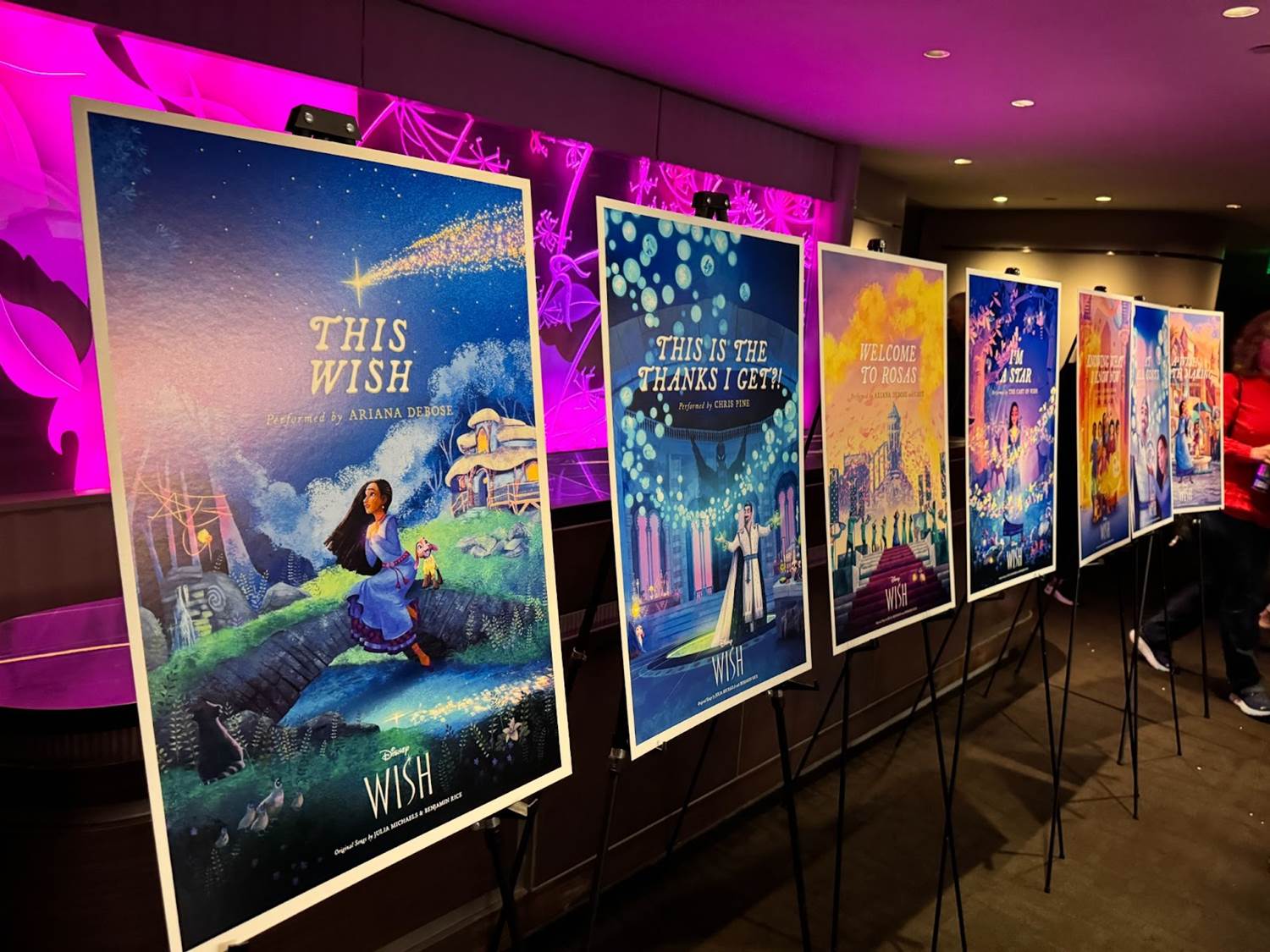 The lobby was decorated with posters that were created to promote each song from the film, all available from Walt Disney Records from streaming providers, as well as on CD and vinyl soundtrack albums.
