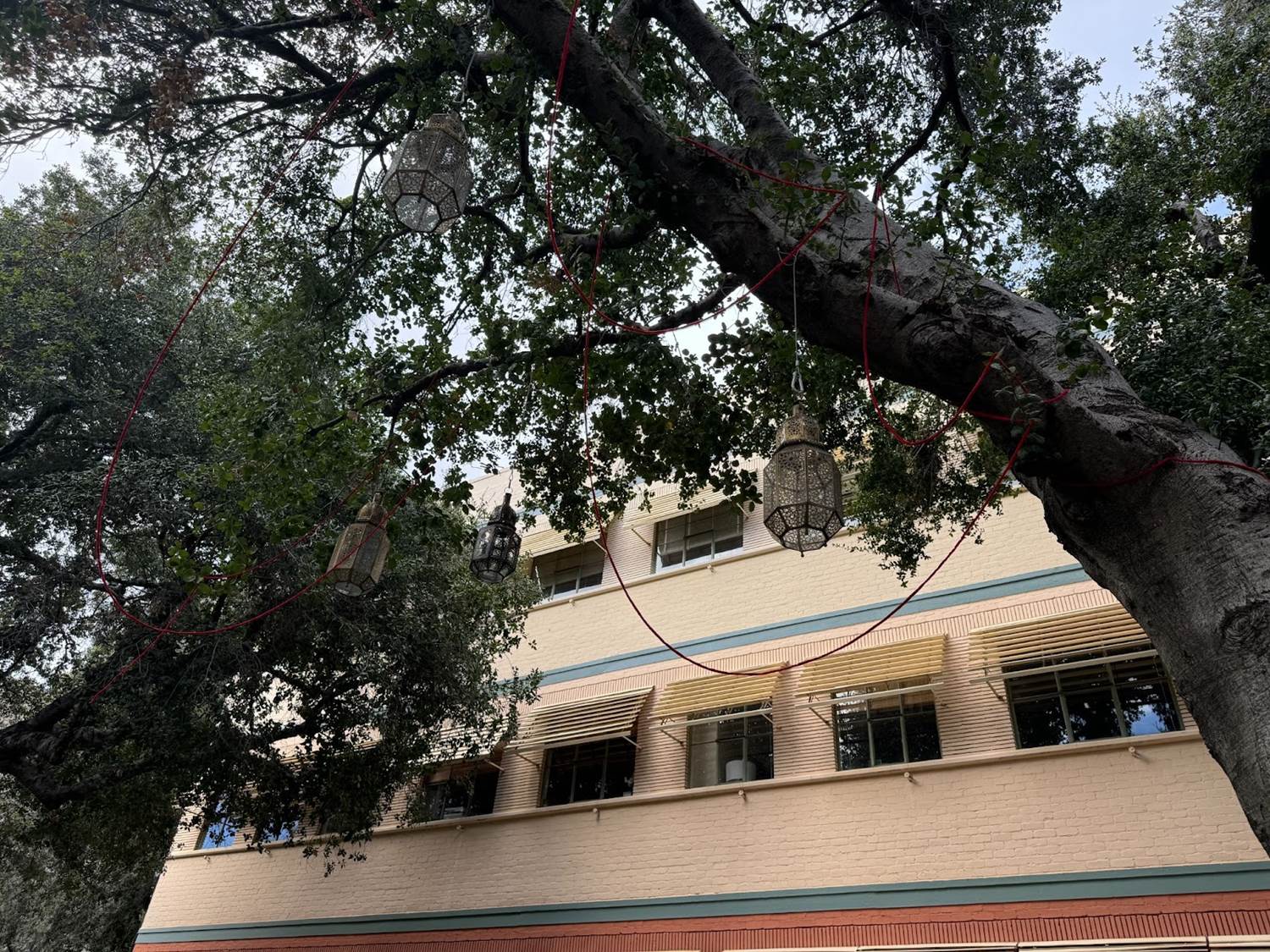 Star had clearly been through the area, with red yarn strung through the trees on the studio lot.