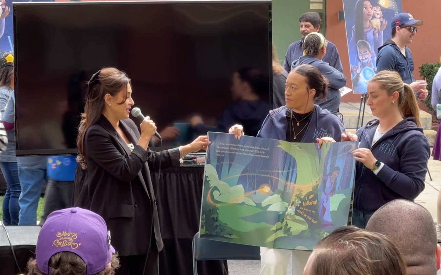 The screening itself included Once Upon a Studio (included as a bonus feature with Wish) before a sing-along version of the film. A microphone was set up and brave attendees could step up to lend their vocal talents to each song, which became incredibly adorable as kids joined in. As a surprise parting gift, attendees could choose from an assortment of Wish items, including an early copy of the film on Blu-Ray/DVD/Digital.