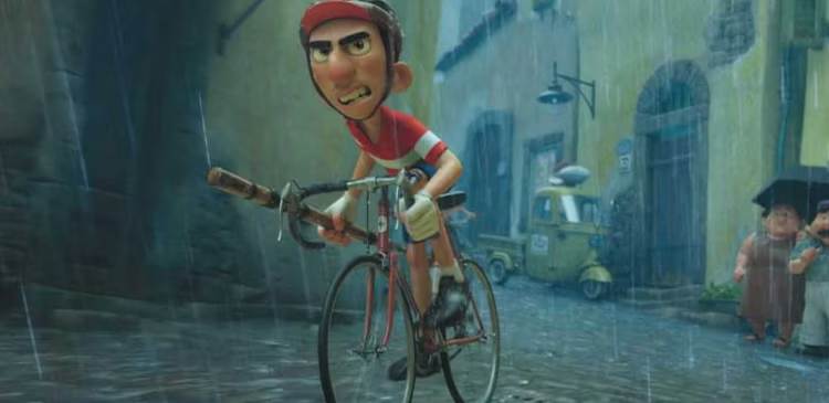 Also spotted during the triathlon race is a three-wheeled version of the famous Toy Story Pizza Planet truck. Don’t blink or you’ll miss it! The niche vehicle - known in Italy as a Piaggio Ape - is seen behind Ercole while he angrily rides his bike in the rain. It is smaller and old-fashioned, compared to the modern version we know so well, but it is decked out with the unmistakable Pizza Planet rocket and logo.