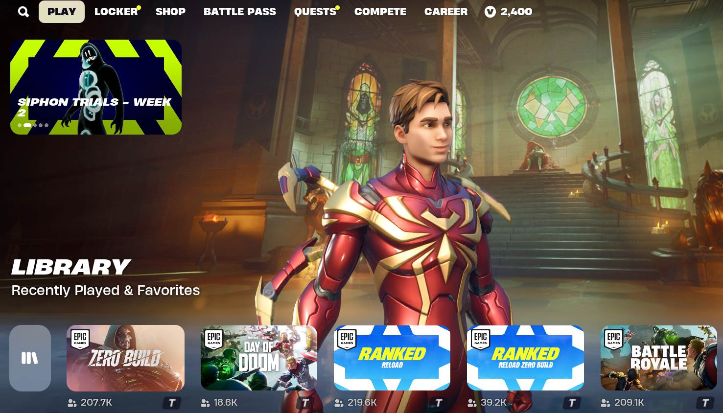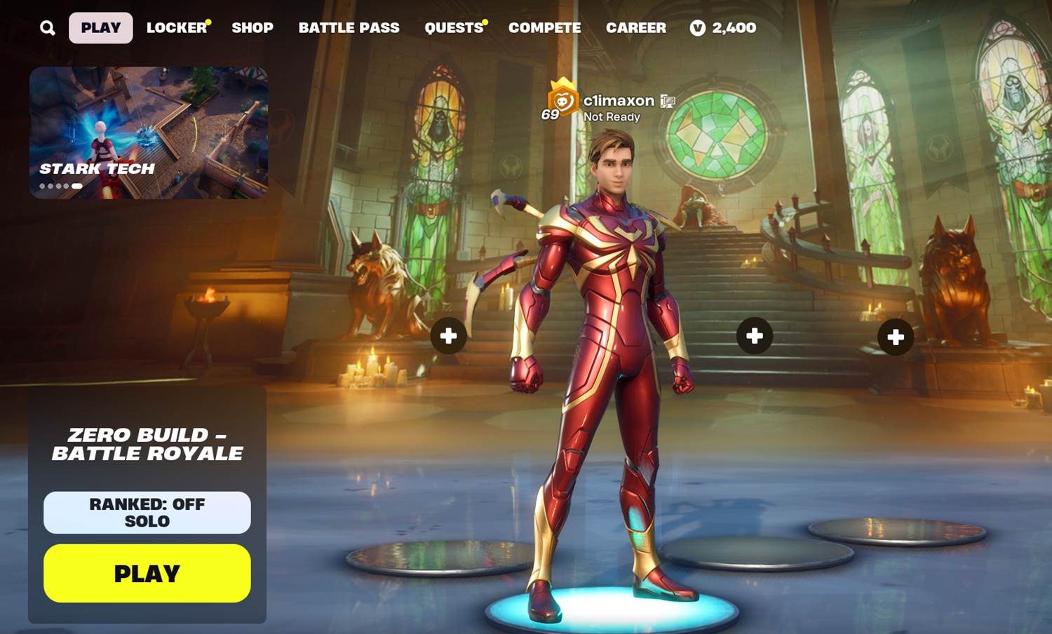 Once you open the game on your gaming console, mobile device, or PC, you’ll find yourself in the lobby. Up at the top, you’ll see several different tabs that will take you to different areas in the game’s main menu. For those interested in grabbing one of the magnificent new Marvel skins or newly released The Incredibles skins, head to the shop and grab them while they are available. Heading to the “Locker" tab will allow you to go through and change your cosmetics. For right now, we are gonna ignore the other tabs. At the bottom of the screen under “Library" click the icon that says “ZERO BUILD," which will then lower down the library tab and allow you to start matchmaking.