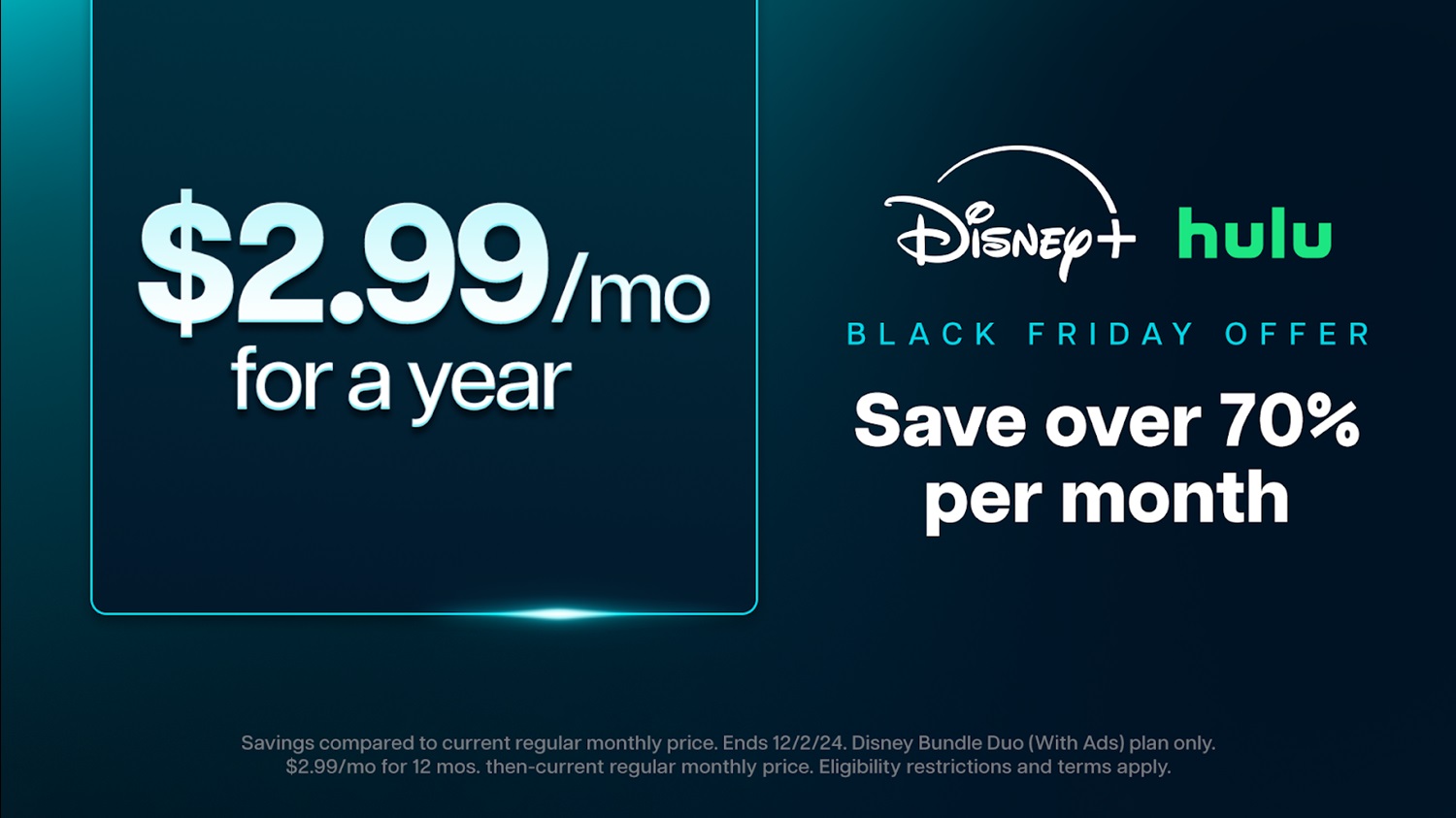 - Want access to Disney+ as well? Well you can get the Disney Bundle Duo Basic for just $2.99/month for 12 months (regular price $10.99/month). This plan includes Disney+ and Hulu (both with ads).