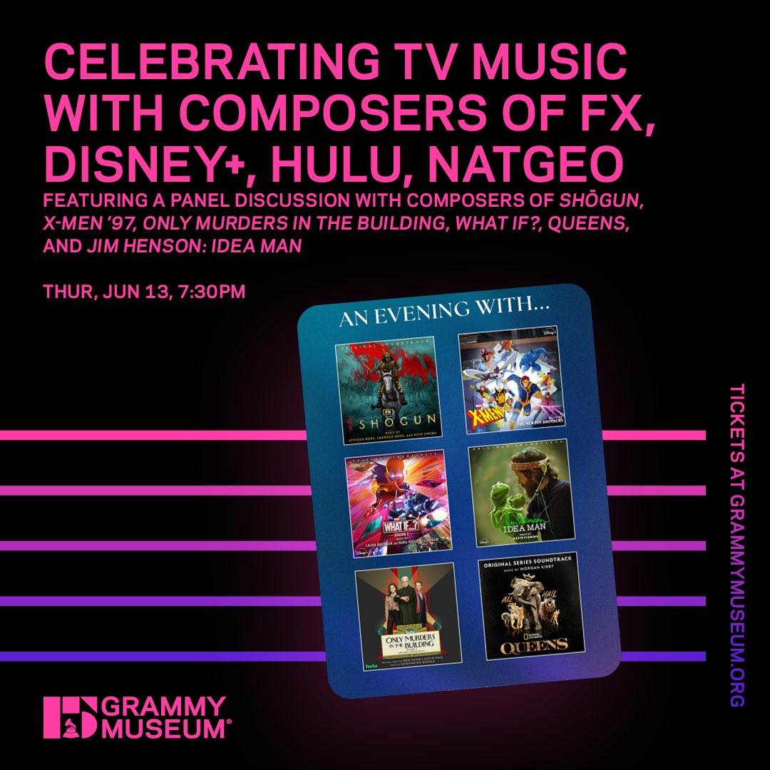 - The composers of Shōgun, X-Men ’97, Only Murders in the Building, What If?, Queens, and Jim Henson: Idea Man will all be on hand to discuss their respective works and the way they craft scores for television.