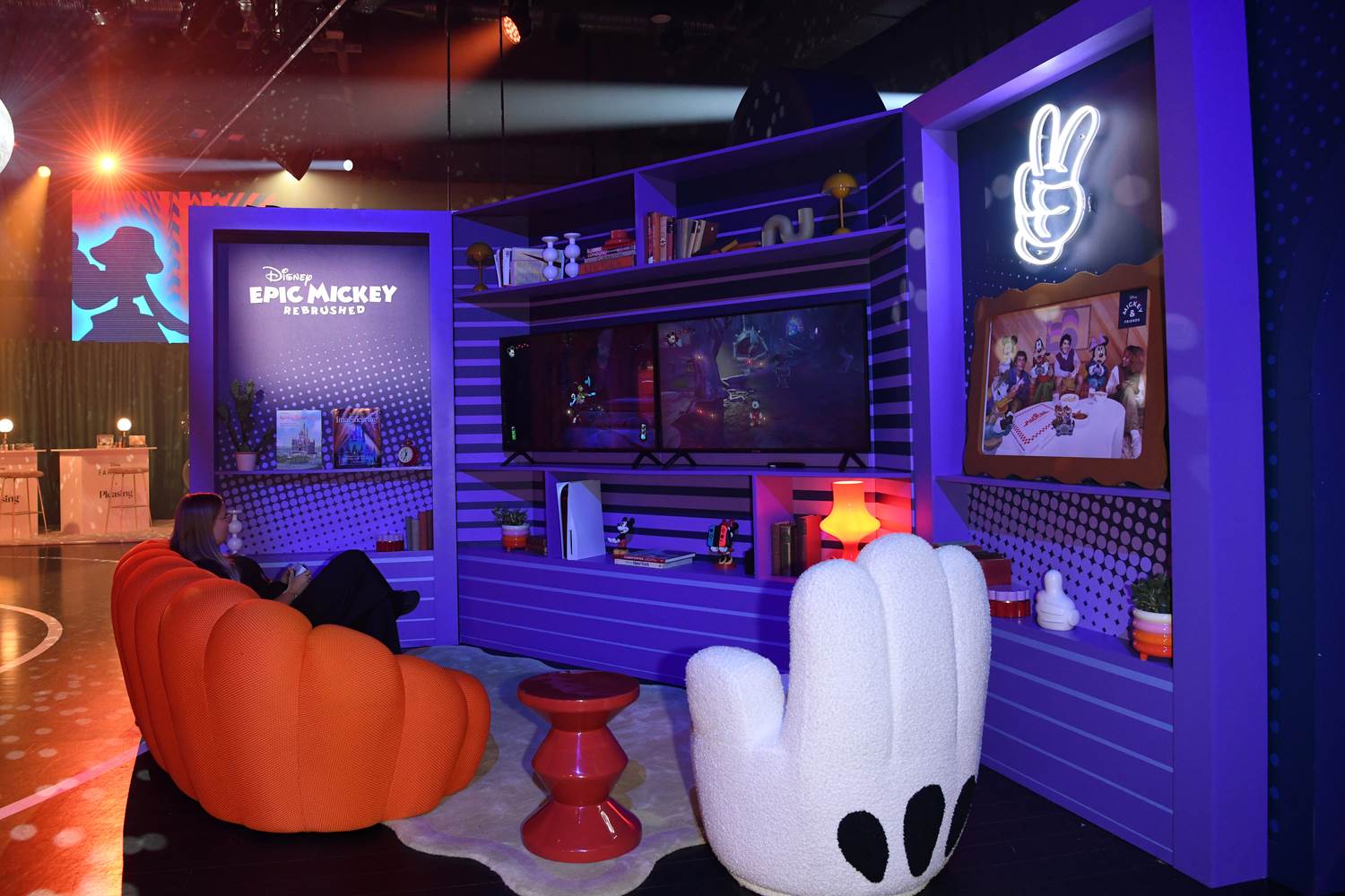 - Within the space, partygoers had manicures at a pop-up nail bar by Pleasing, hung out with friends in the Epic Mickey Rebrushed games room, enjoyed a Simba plush grabber machine, partied alongside Mickey & Friends thanks to motion capture technology, and enjoyed many content capture moments.