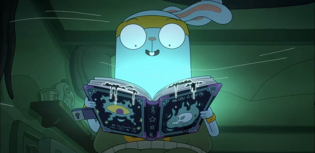 At the party, Barry has made his way to the basement where he finds the high schoolers attempting to read from a creepy book. The high schoolers are hesitant to do so, as this book is clearly some kind of magic or witchcraft. Barry mistakes this as an inability to read, and volunteers to help. He recites some kind of incantation or hex and releases Scarm Scarmely from an eternal prison, voiced by special guest Andy Daly. He is stuck in his own ring of fire, and can’t leave unless he gets a proper invite. Fortunately, Barry has several invitations to Trevor’s party handy and wants to make sure he has a good time too. In return, Scarm will also grant a wish - Barry wants to be brave like his best friend Kiff. The deal is made, Scarm is invited, and now free from his eternal prison to go enjoy the party upstairs. Barry should have read the fine print though, he will only be brave for 30 minutes.