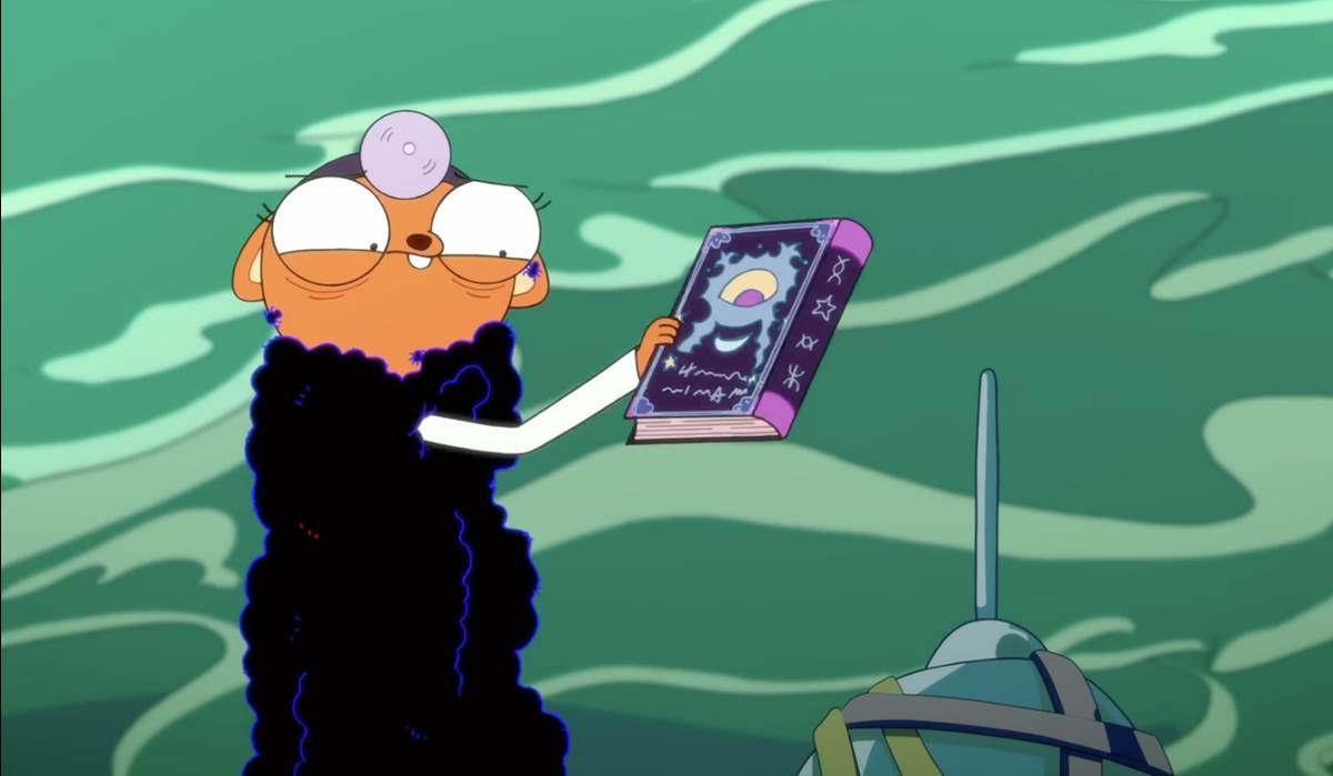 Fortunately, Roy Fox shows up with his thousands of spider friends to take on Scarm, and the spiders form shapes to help Kiff reach the top of the tower to retrieve the book. Gross. As Scarm reaches for the book, Kiff opens it and his arm gets sucked back in. The plan has worked, and Scarm is trapped once again. Barry, who has had a countdown clock open on his phone is impressed at how brave he has been, even with 12 minutes left. Kiff knows that can’t be right, as he has been in Scarm’s stomach for at least an hour. Turns out, he has paused his clock and has been brave on his own this entire time.