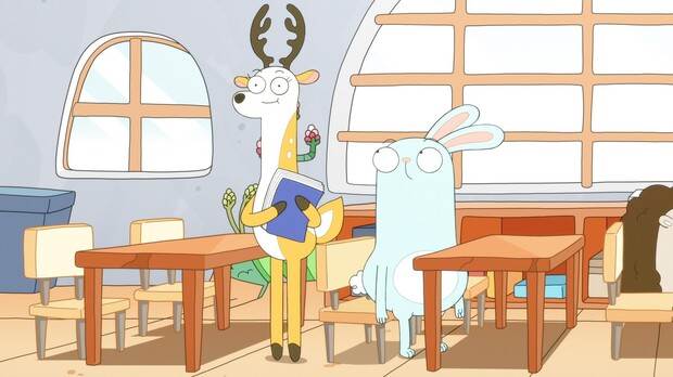Miss Deer Teacher knows the kids are excited, but reminds them that they have a book report they must do. At the same time, Principal Secretary holds a pep rally to get the kids excited about their upcoming victory against Tuft Pierre, and tells the students he spent half the school’s budget on a new trophy case. The other half went to a stunning statue depicting Kiff launching a discus.