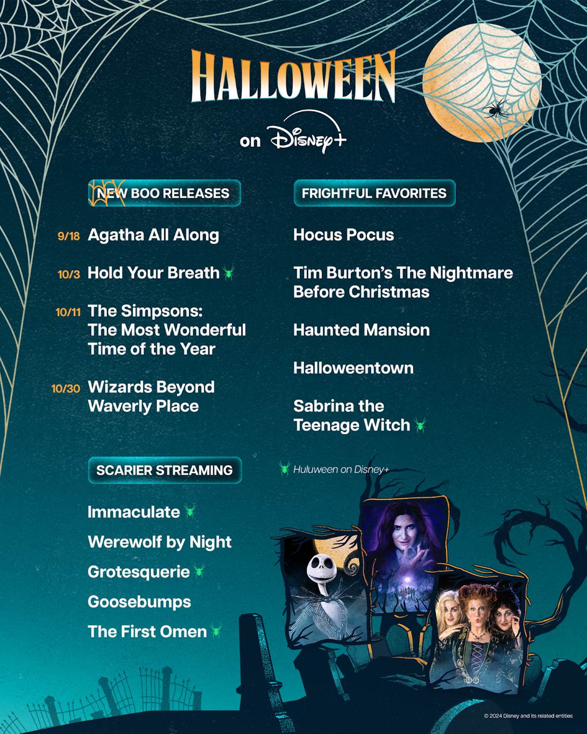 - Disney+ subscribers can stream Agatha All Along (now streaming), Wizards Beyond Waverly Place (October 30), and The Simpsons titled The Most Wonderful Time of the Year (October 11).