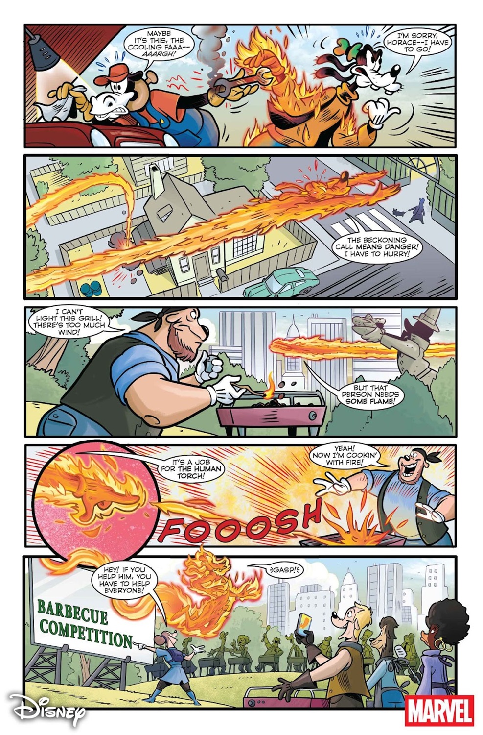 - Mark Paniccia, Editor: “Steve Behling and Riccardo Secchi have done it again with a wild and funtastic take on Marvel’s First Family! Seeing the initial cover sketches by Lorenzo Pastrovicchio with Mickey and friends as the Fantastic Four got our appetite whet for the hilarious hijinks to come, and the final product did not disappoint! Goofy lighting a barbecue? Donald made of rocky feathers? Mole Pete in charge of monsters from the abyss? As a huge FF fan myself, I can say this issue did everything possible to tickle my nostalgic funny bone."