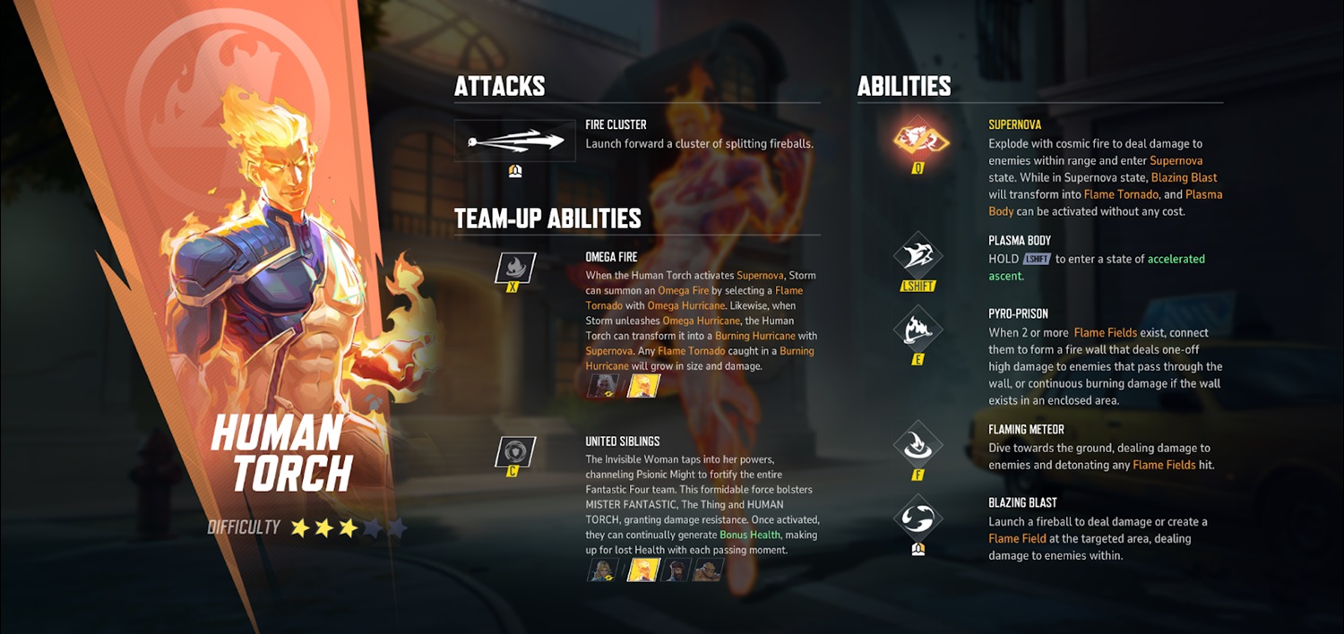 Here’s a full list of Human Torch’s full list of abilities for those looking for a more indepth look at the character’s move set.