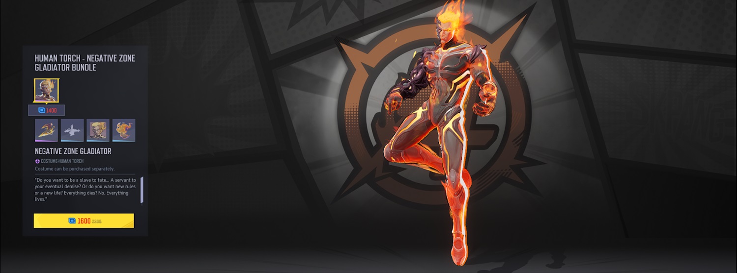 For Human Torch, we have the Negative Zone Gladiator Bundle.