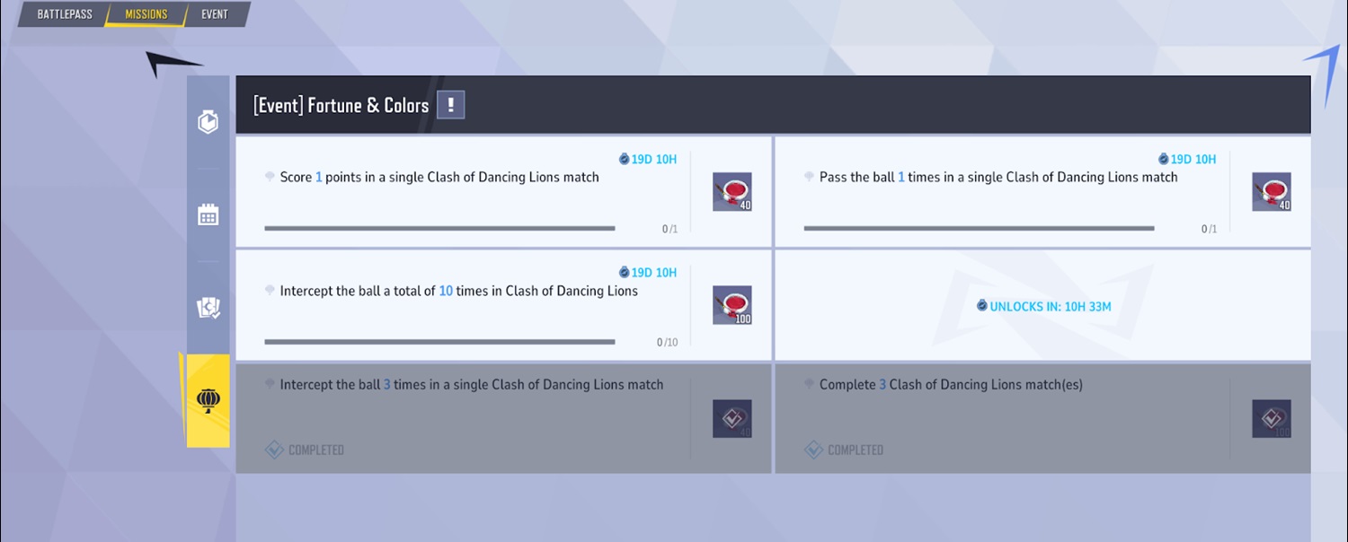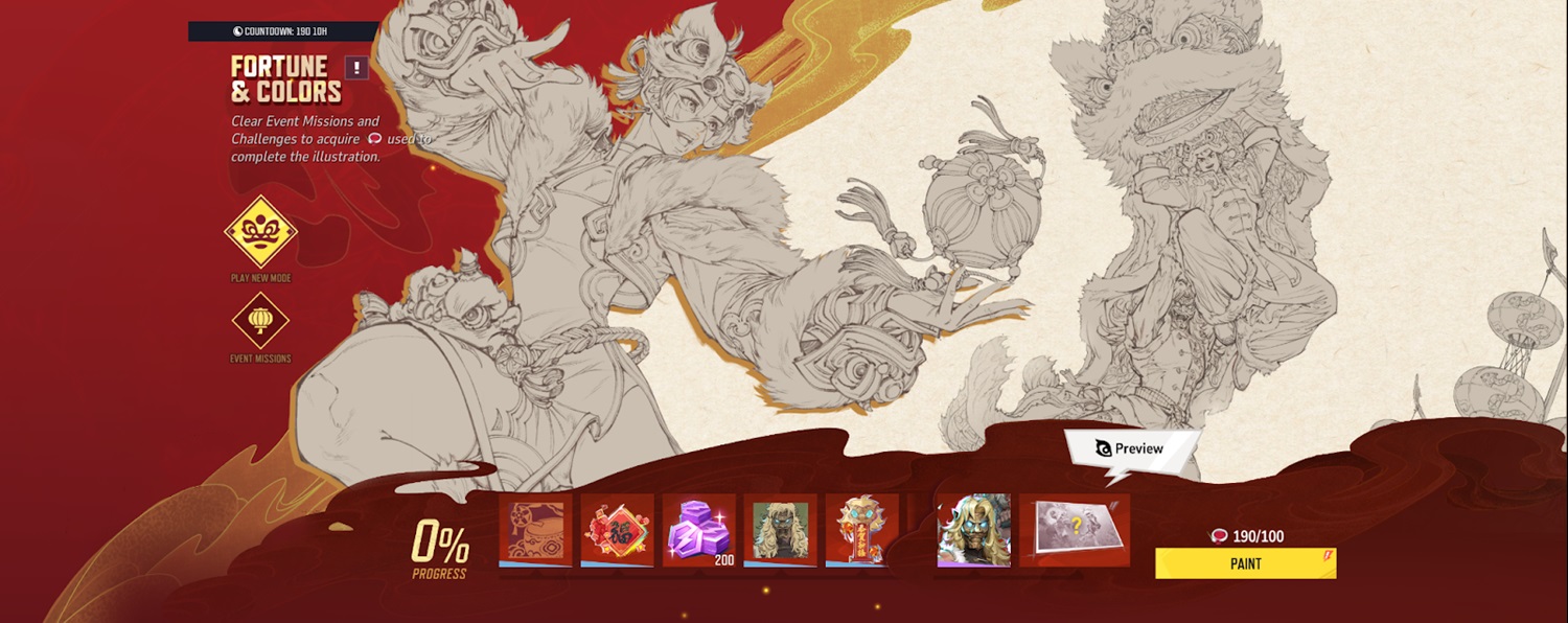 - When launching the game, players will be able to see the new event in the upper left hand corner. By clicking on it, it will take you to a rewards track titled Fortune and Colors.