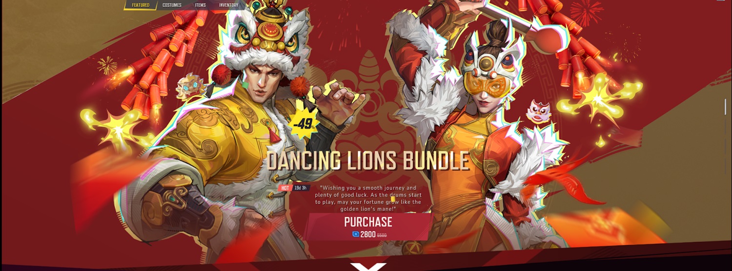 - The pair of costumes can be purchased through the Dancing Lions Bundle. For 2800 units (about $28), grab each bundle’s costumes and accessories for about 26% off as opposed to buying each separately.