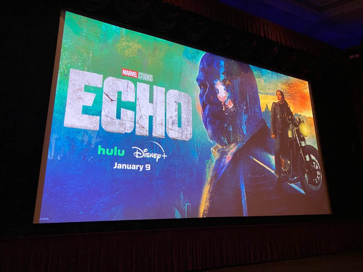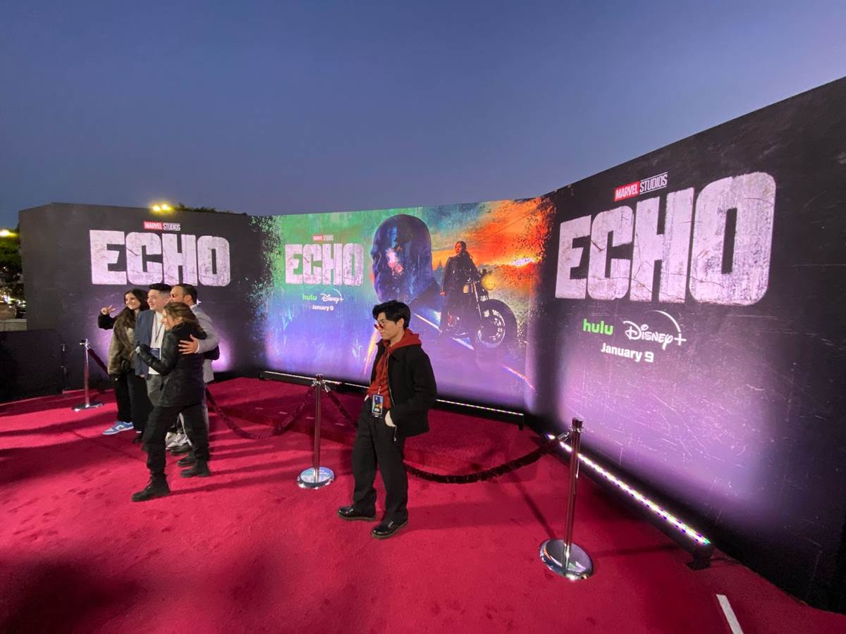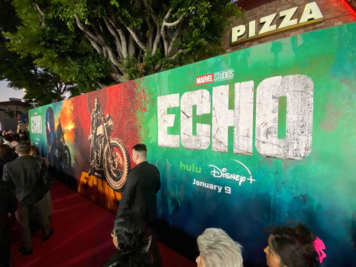 Arriving at the historic Westwood Village theater, it was cool to see the venue decked out in imagery from Echo and Marvel Studios.