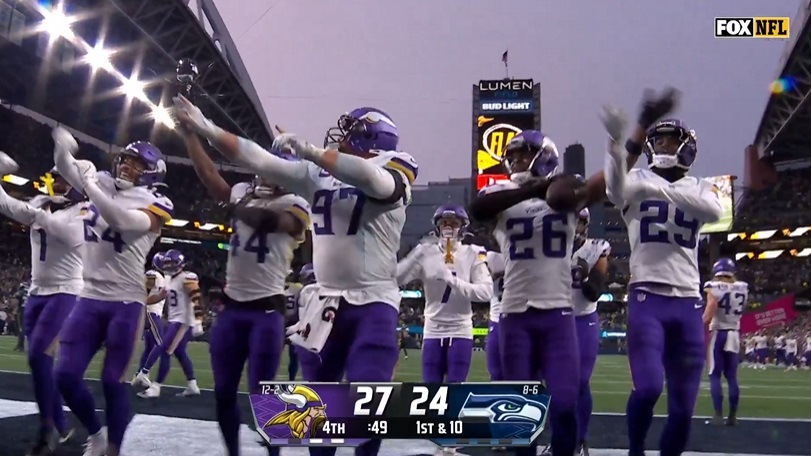 - Shared by the official NFL X account, the clip shows several of the Vikings star players dancing in unison at the end zone after defeating the Seahawks at Lumen Field.