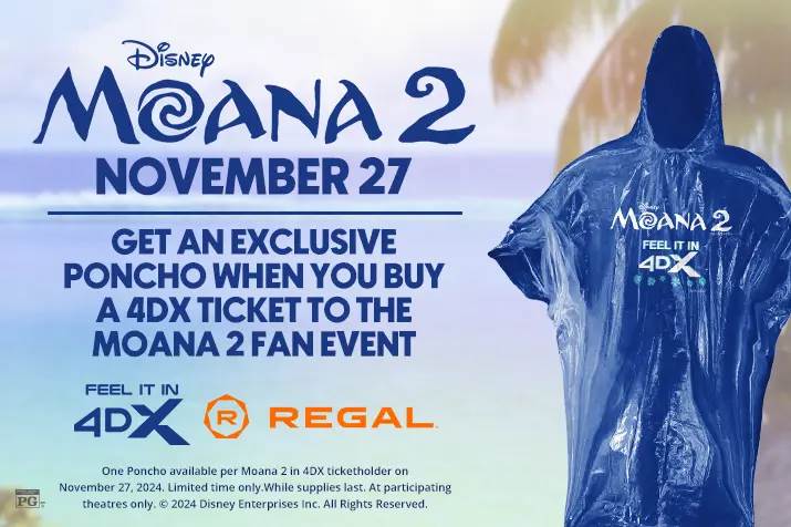 So, Included with a 4DX ticket, moviegoers who go to see the film in this unique format will get a Moana 2 poncho. Yes, that’s right…Poncho. Considering much of the context of the movie - it’s a safe bet that there’s a reason they’re giving these ponchos away.